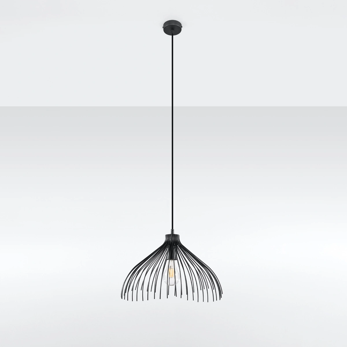 Z wysokością całkowitą aż 125 cm, lampa doskonale sprawdzi się zarówno w wysokich loftach, jak i w klasycznych mieszkaniach. Solidna, stalowa konstrukcja zapewnia trwałość i łatwość utrzymania w czystości, a matowa czerń doskonale współgra z surową cegłą, betonem czy drewnem. Lampa UMB to idealny wybór do salonu, kuchni, nad wyspę kuchenną czy do jadalni – wszędzie tam, gdzie liczy się zarówno styl, jak i praktyczne oświetlenie.