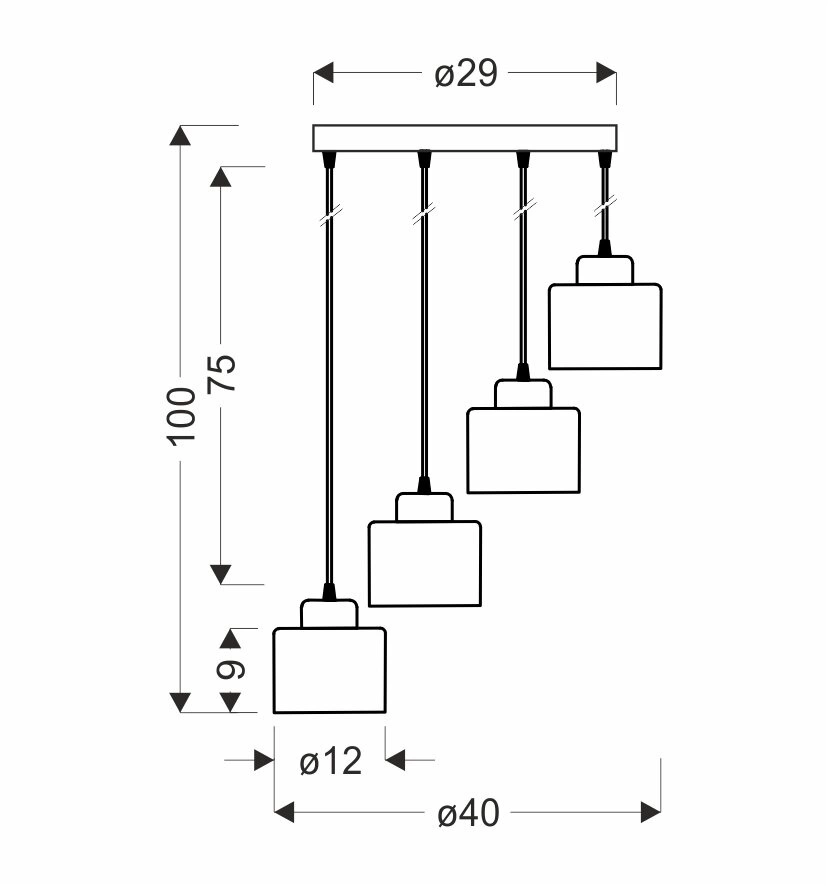 Lampa wisząca Wama czarny 4x40W E27 klosz czarny+srebrny