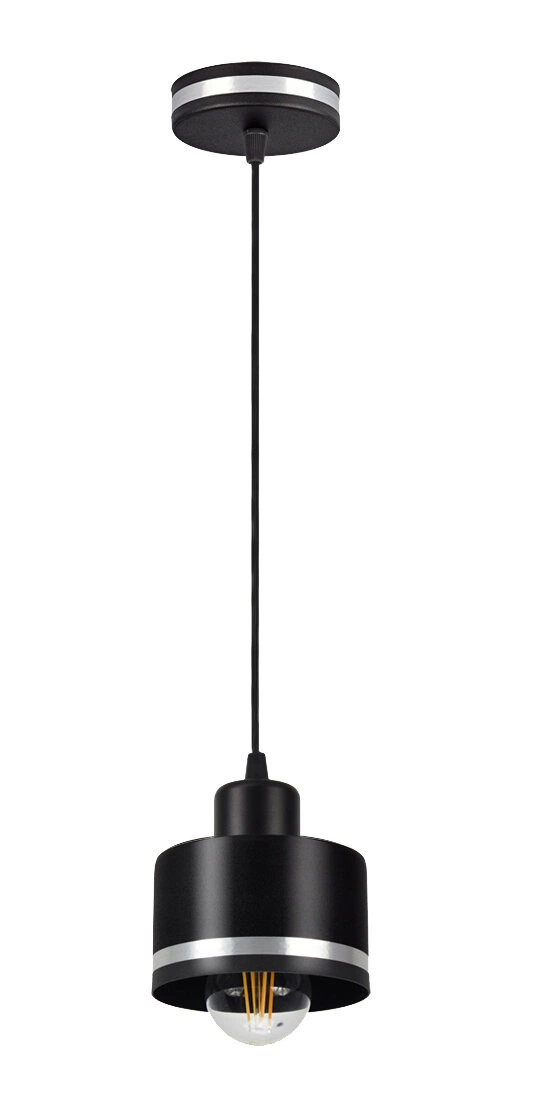 Prezentowana lampa wisząca Wama to połączenie elegancji i nowoczesności. Wykonana z trwałego metalu, wyróżnia się cylindrycznym kloszem w kolorze czarnym. Matowy abażur, zawieszony na przewodzie wychodzącym z czarnej podsufitki, jest subtelnym akcentem, który nadaje lampie unikalnego charakteru. Dodatkowym atutem jest srebrny pasek, który przełamuje czarną barwę, nadając lampie dodatkowej elegancji. Wama to doskonałe rozwiązanie dla osób ceniących minimalistyczny, loftowy styl.