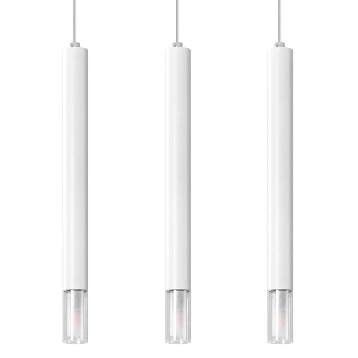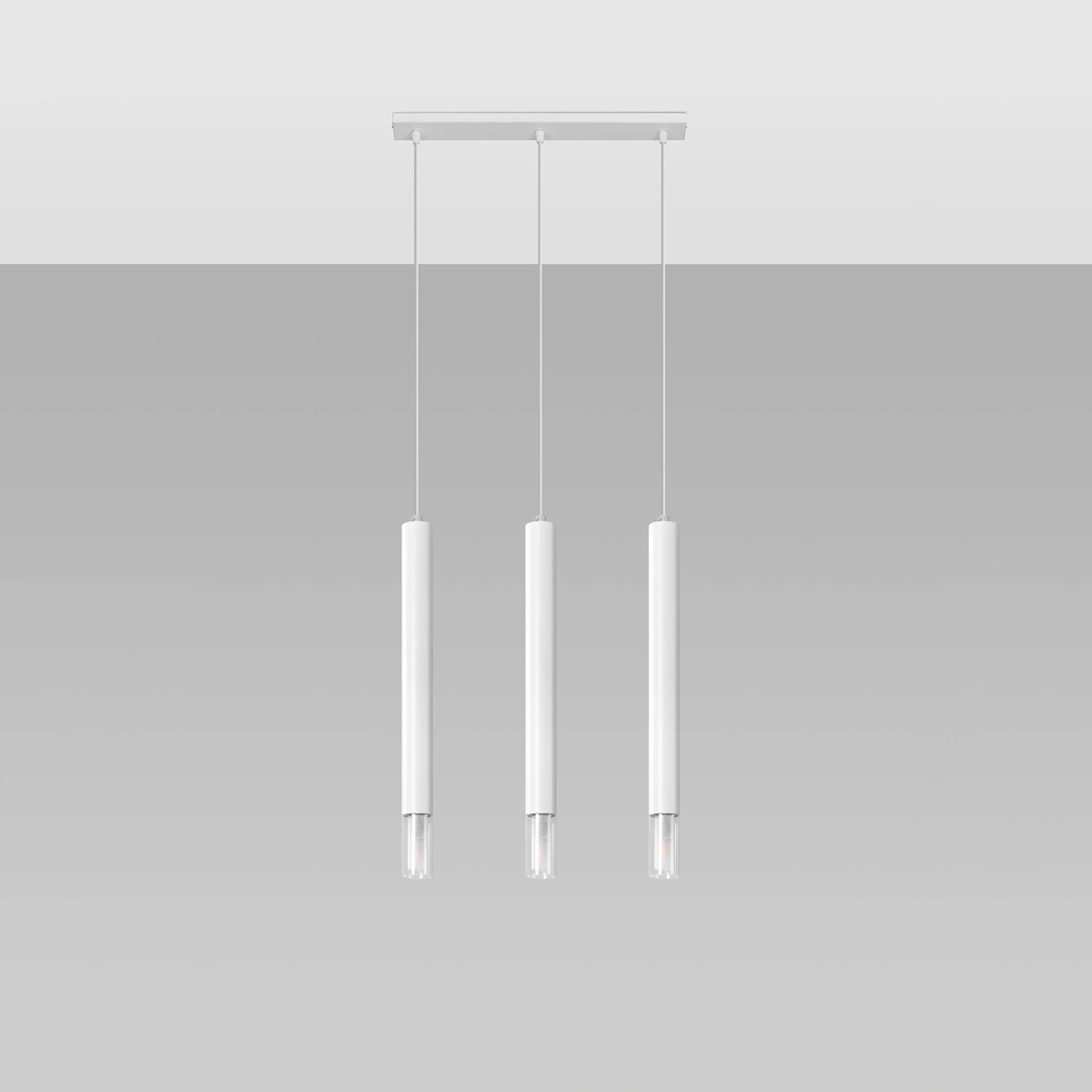 Lampa wisząca Wezyr 3 biała marki Sollux Lighting to nowoczesne, potrójne oświetlenie sufitowe wykonane z połączenia szkła i metalu. Kompaktowa forma (wysokość 120 cm, szerokość 6 cm, głębokość 45 cm) oraz minimalistyczny design sprawiają, że doskonale sprawdzi się jako lampa do salonu, żyrandol do jadalni lub stylowa lampa nad wyspę kuchenną. Trzy źródła światła typu G9 umożliwiają precyzyjne doświetlenie wybranej przestrzeni, podkreślając jej charakter.