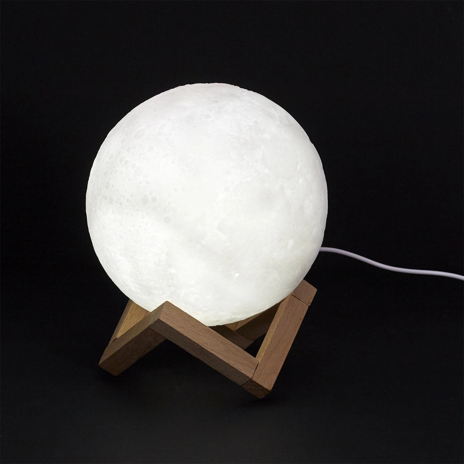 Oświetlenie dekoracyjne buduje przytulną atmosferę we wnętrzu. Stołowa lampka Moon to zarazem dodatek dla wielbicieli wieczornego relaksu przy mniej intensywnym świetle, jak i świetna dekoracja. Okrągły kształt lampki przypomina księżyc w pełni, co podkreśla struktura klosza. Nieregularnie przenikające przez niego światło, daje zróżnicowany efekt, który budzi skojarzenia z delikatnym światłem nocy. Ta wyjątkowa lampka nocna wsparta jest na drewnianym geometrycznym stelażu oraz wyposażona we włącznik, dzięki któremu nie tylko włączysz lampkę, ale i zmienisz barwę światła. Lampka nocna kula to doskonały dodatek do wnętrz w stylu skandynawskim i boho. Doda naturalnej atmosfery i sprawi, że Twoje wnętrze po zmroku nabierze charakteru.