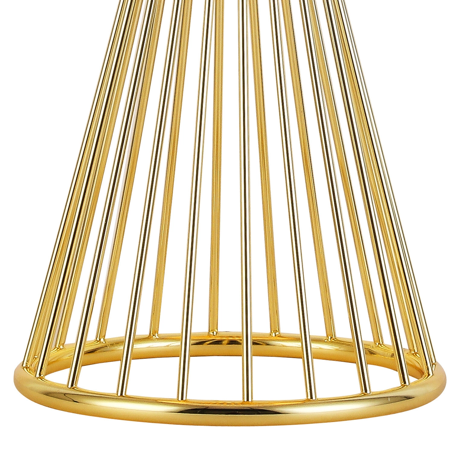 Stabilna podstawa lampy wykonana jest z metalu w kolorze polerowanego złota.