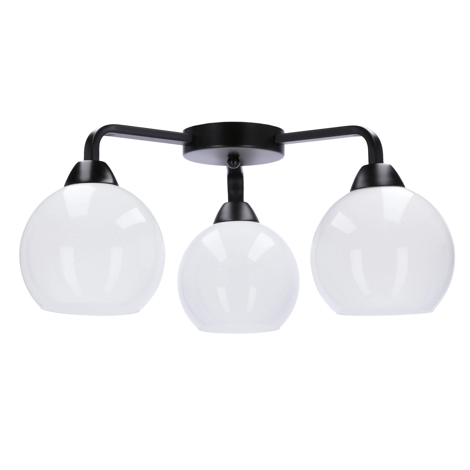 Lampa sufitowa Caldera to połączenie klasyki z nowoczesnością, które przyciąga uwagę swoim unikalnym designem. Czarna oprawa lampy, wykonana z metalu, kontrastuje z białymi kloszami z szkła, dodając wnętrzu charakteru. Trzy źródła światła, każde o mocy do 60W, zapewniają optymalne oświetlenie pomieszczenia.