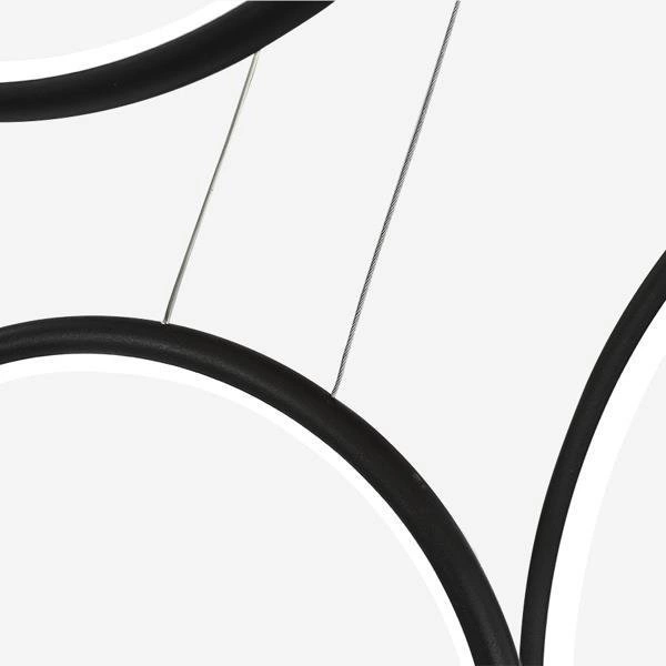 LEDowe Okręgi marki Altavola Design to lampa, z jednej strony zachwycająca prostotą formy jej geometrycznych abażurów, a z drugiej strony przewrotnie przykuwająca wzrok swym wyrafinowaniem. Ta ultranowoczesna lampa skrywa w sobie technologię SMD LED, co czyni z niej również oświetlenie energooszczędne. Delikatne aluminiowo-sylikonowe okręgi świecą mocnym, bardzo przyjaznym naturalnym światłem. Oznacza to, że lampa świetnie sprawdzą się zarówno we wnętrzach mieszkalnych, jak i biurach oraz hotelach. Maksymalna długość zawieszenie okręgów mierzona od podsufitki to 197 cm. Kolor: Czarny Materiał: aluminium, silikon