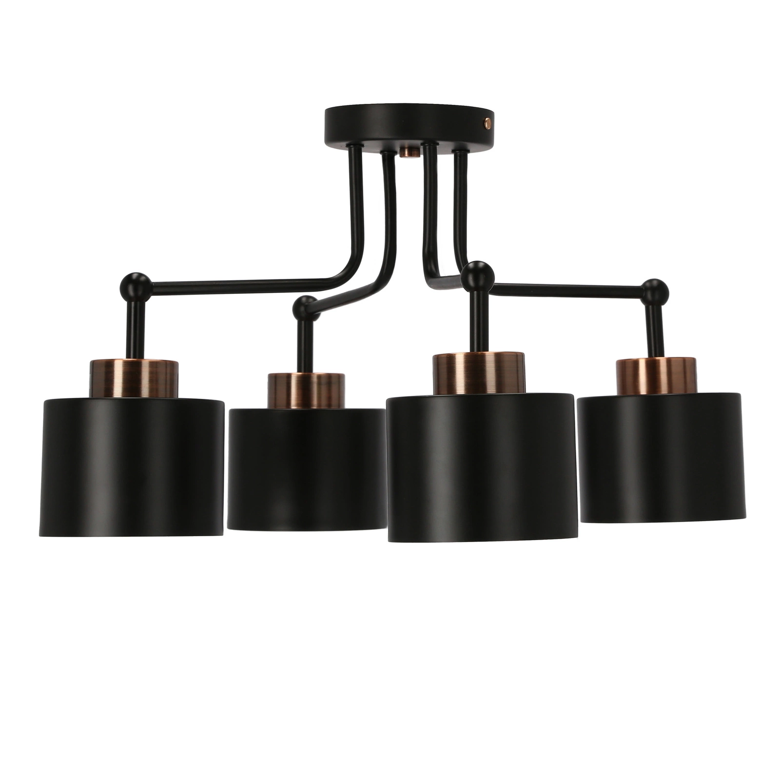Prezentujemy Państwu lampę sufitową Olena, która wyróżnia się swoim nowoczesnym i minimalistycznym designem. Czarna, matowa oprawa żarówki tworzy harmonię z miedzianymi elementami, nadając całości loftowego charakteru. Lampa posiada cztery abażury, co umożliwia rozproszenie światła w sposób równomierny i przyjemny dla oka.