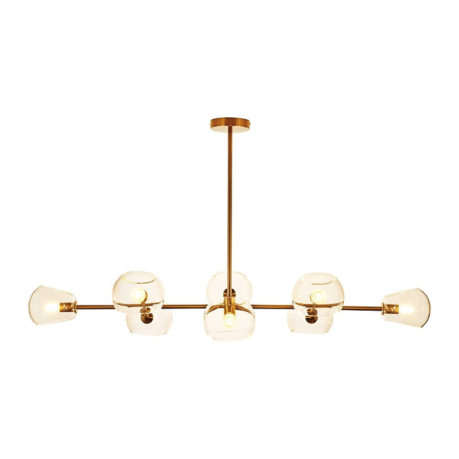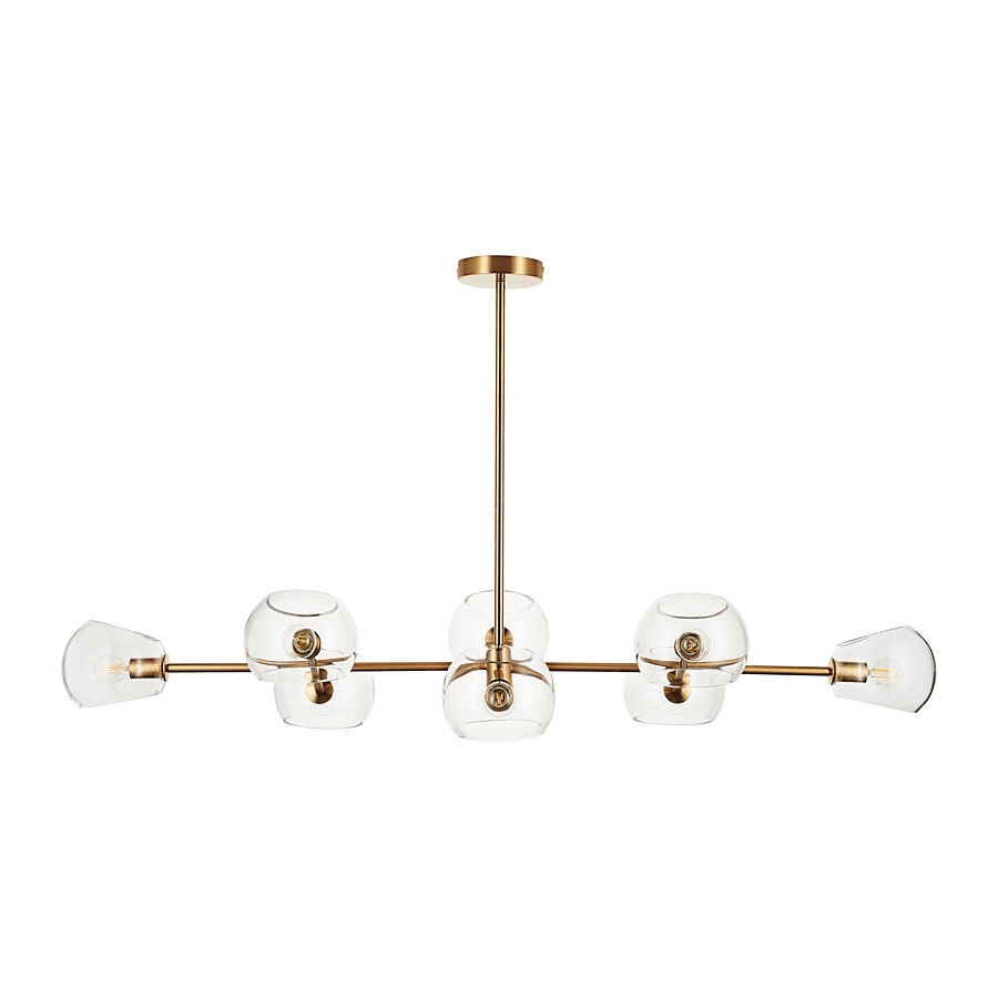 Nowoczesna lampa wisząca COSMIC-8 marki Step into Design to połączenie wyrafinowanego designu i praktyczności. Model o długości 85 cm, wykonany z transparentnego szkła i stali w efektownym, złotym kolorze, zachwyca ośmioma kulistymi kloszami. Ta dekoracyjna lampa sufitowa doskonale sprawdzi się jako główne oświetlenie w salonie lub nastrojowa lampa nad stół w jadalni.