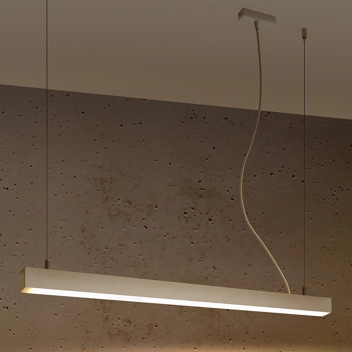 Lampa wisząca zaprojektowana jest w formie podłużnej belki. Metalowy klosz dostępny jest w trzech kolorach: białym, czarnym i szarym. Do wyboru pozostaje również długość lampy spośród trzech rozmiarów: 67, 90, 117 i 150 cm. W zestawie do dołączona jest również żarówka. W kolekcji Pinne dostępne są nie tylko lampy wiszące, ale również plafony i kinkiety, przez co łatwo będzie znaleźć pasujące dodatkowe źródła światła w razie gdyby ta lampa nie była jedynym oświetleniem przestrzeni.