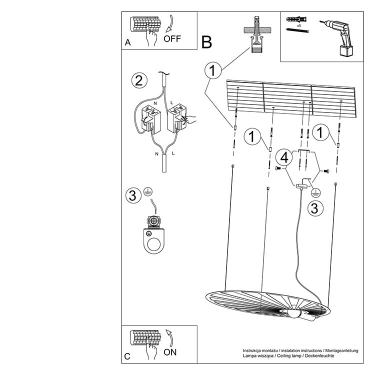 Lampa wisząca LEHDET wyposażona jest w oprawę żarówki typu E27, co umożliwia zastosowanie żarówki o mocy do 60W. Dzięki temu, lampa daje możliwość regulacji natężenia światła, co pozwala na stworzenie idealnej atmosfery, czy to podczas wieczornego odpoczynku, czy podczas czytania ulubionej książki.Czarna lampa wisząca LEHDET od SOLLUX LIGHTING - metaliczny blask w Twoim domu