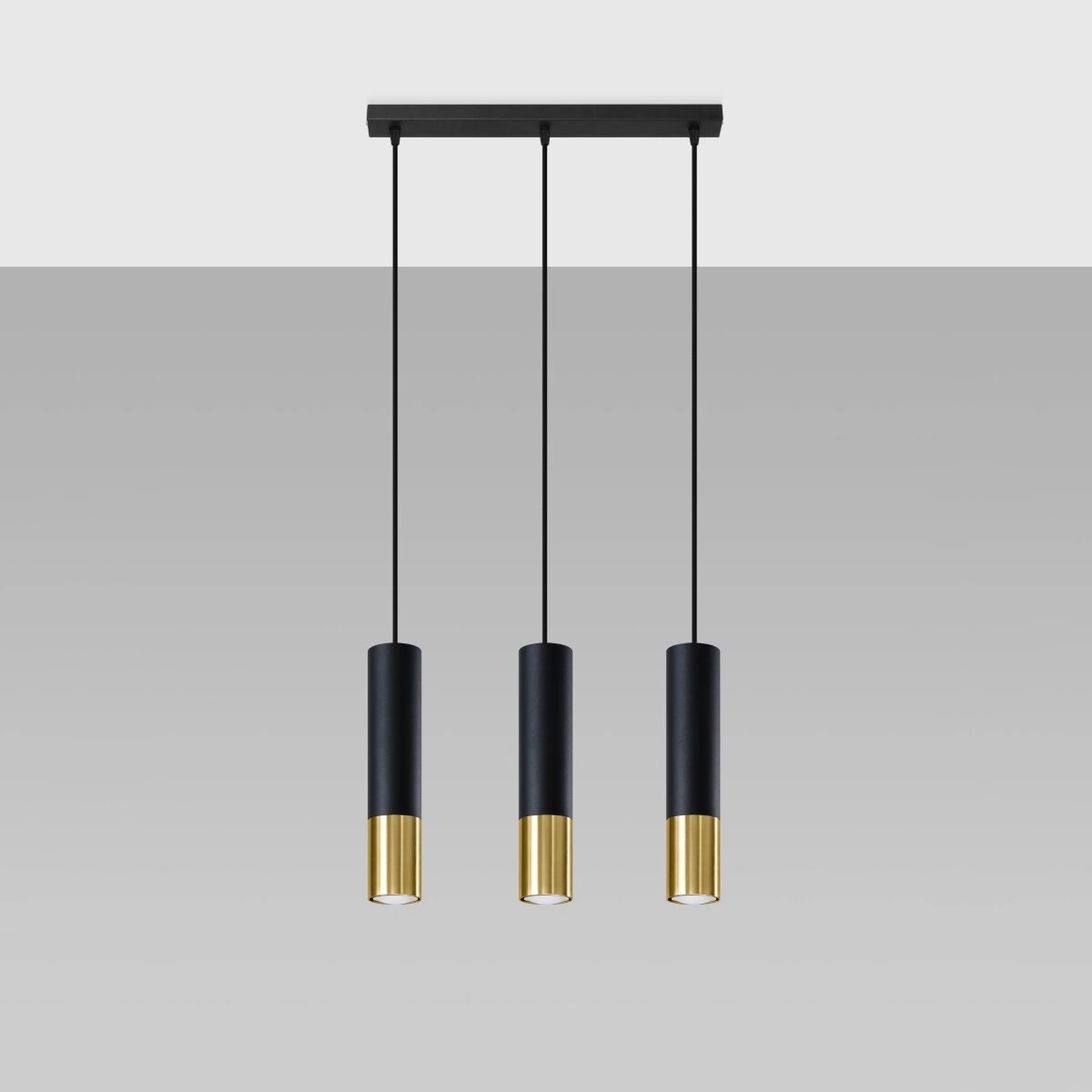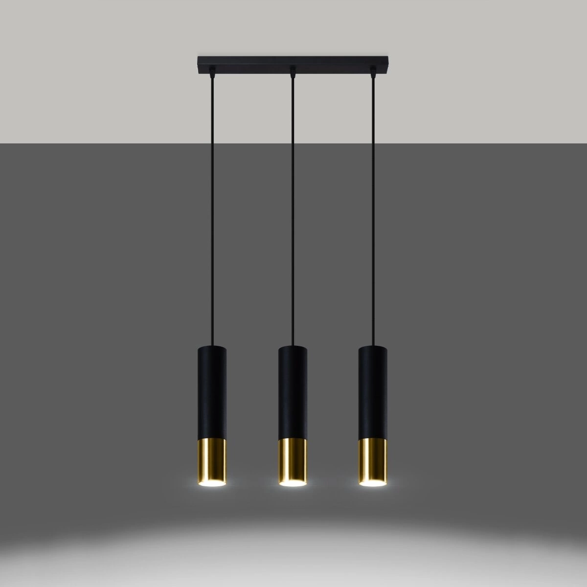 Nowoczesna lampa wisząca Loopez 3L czarna złota nad wyspę do kuchni i jadalni