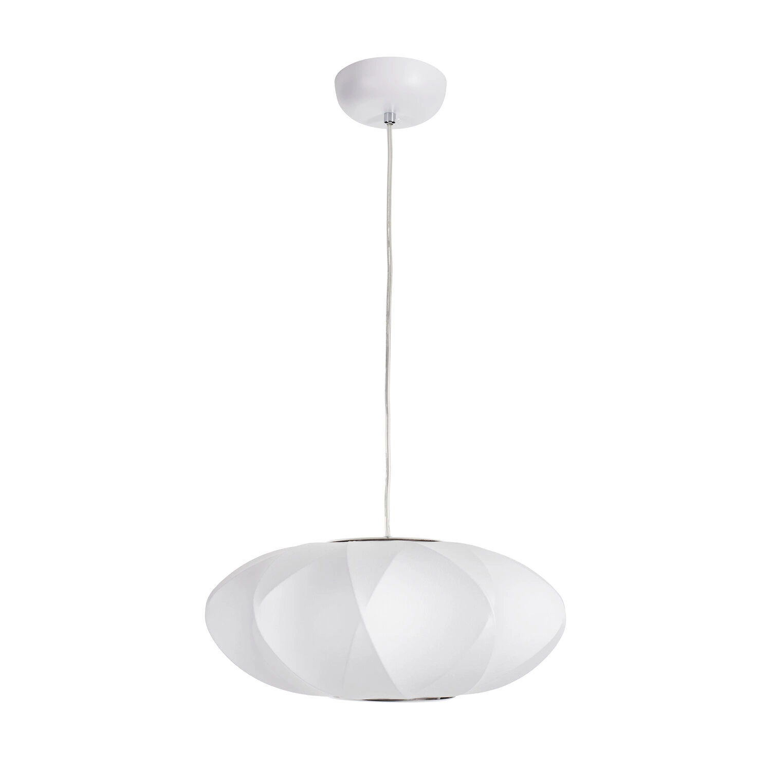Nowoczesna lampa wisząca SILK X-shape biała 40 cm marki Step into Design to harmonijne połączenie minimalistycznej estetyki z praktyczną funkcjonalnością. Wyróżnia ją owalny klosz o szerokości 40 cm, wykonany z lekkiego tworzywa sztucznego i metalu, który gwarantuje trwałość i łatwość pielęgnacji. Dzięki uniwersalnemu, białemu kolorowi oraz subtelnej formie, lampa doskonale wpisuje się w nowoczesne aranżacje salonu, jadalni czy kuchni, zapewniając przyjemne, równomierne oświetlenie.