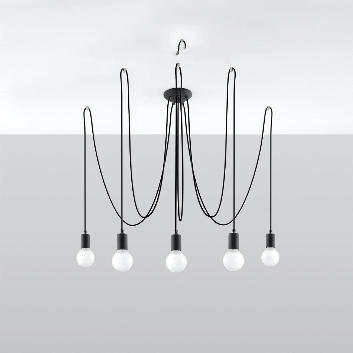 Wybierz czarny żyrandol EDISON 5 marki Sollux Lighting, by nadać swojemu wnętrzu niepowtarzalny, industrialny charakter i cieszyć się komfortowym, funkcjonalnym oświetleniem każdego dnia.