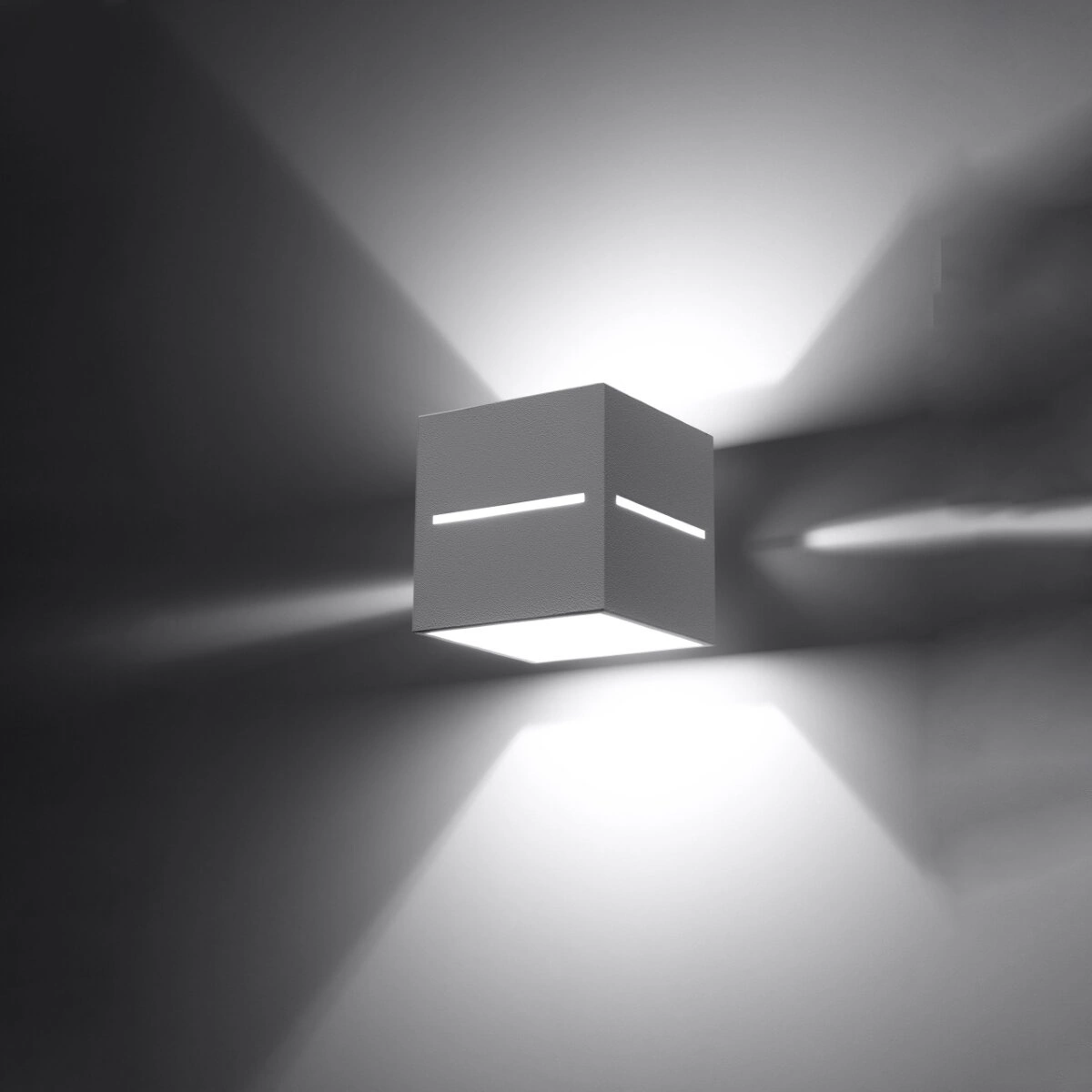 • nowoczesny kinkiet dostępny w trzech kolorach — biały, szary i czarny