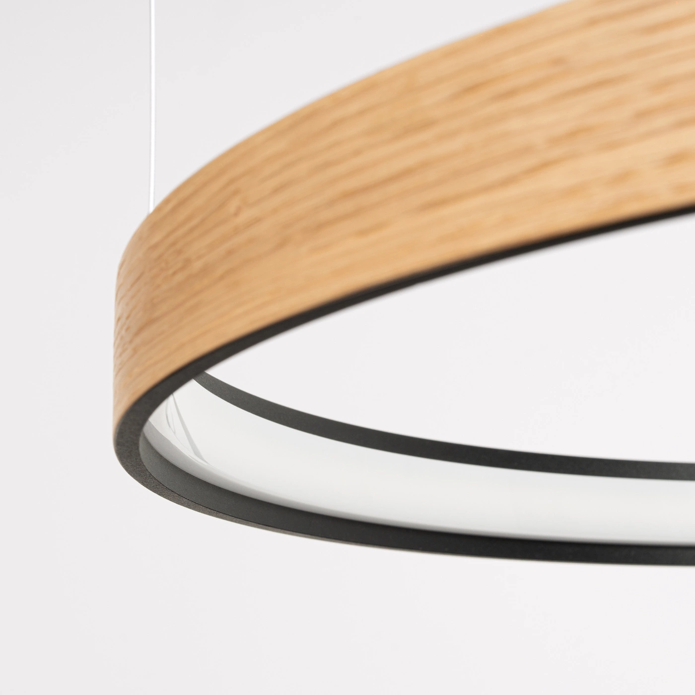 Kolor czarny w połączeniu z naturalnym dębem tworzy wyjątkowo elegancką i stylową kompozycję. Taki żyrandol będzie doskonałym dodatkiem do salonu, sypialni, kuchni czy jadalni, nadając każdemu z tych pomieszczeń unikalnego charakteru.