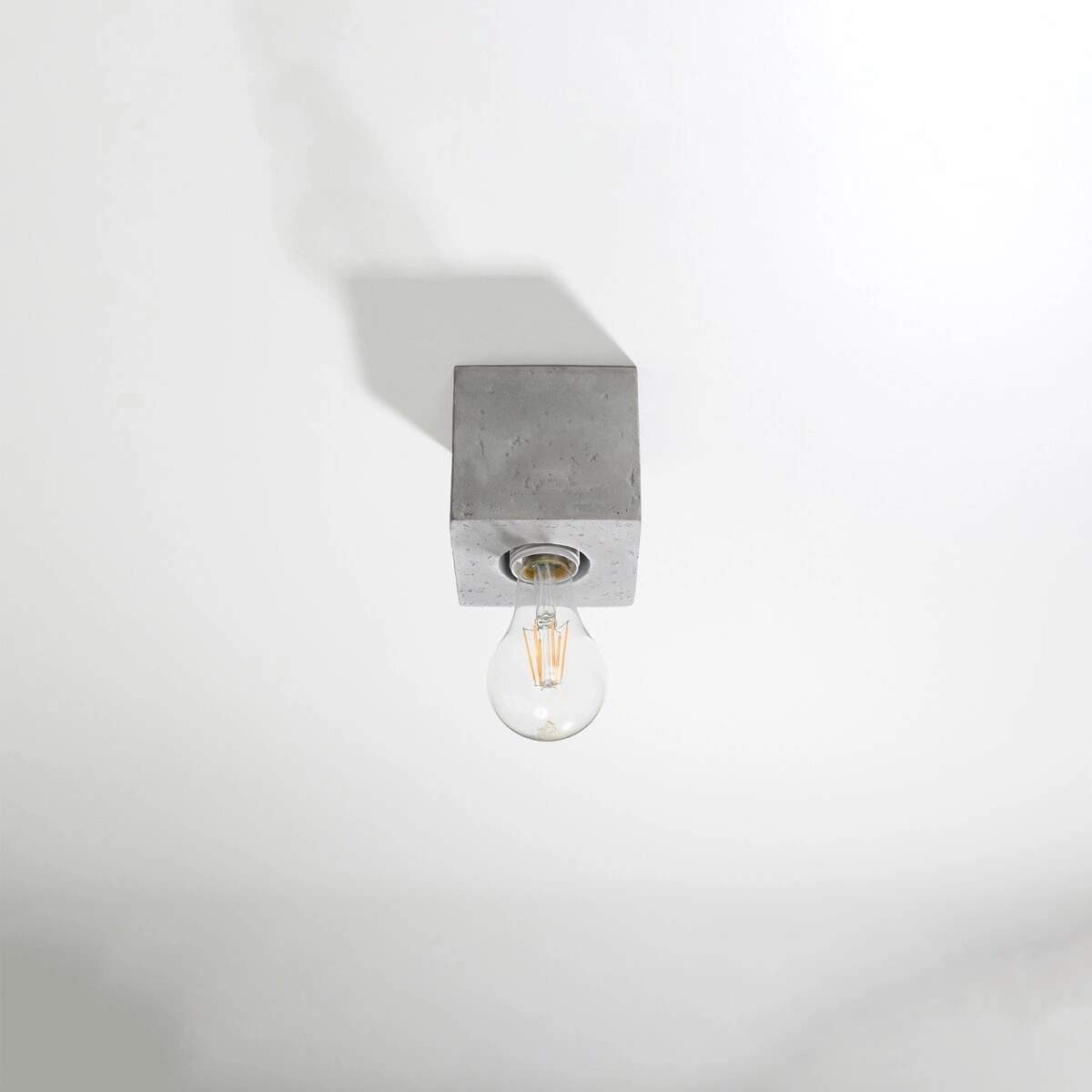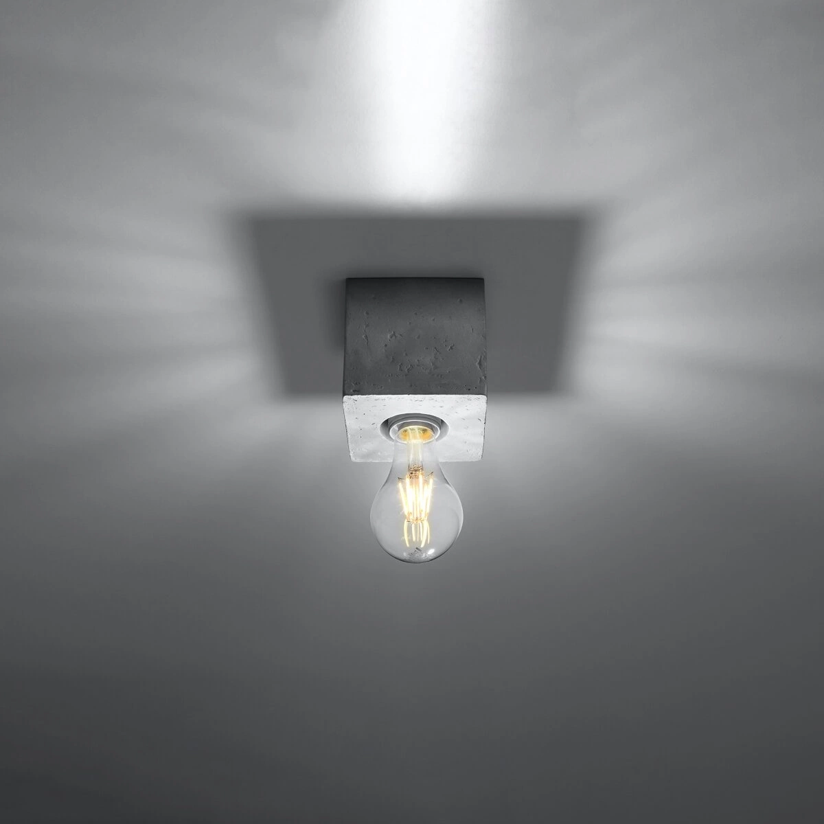 Plafon Ariz to nowoczesne wykorzystanie surowca. Jego podstawę stanowi kubik z betonu, który nie potrzebuje zbędnych dekoracji. Lampa nie posiada abażuru, mimo to jej surowy wygląd zapewnia ciekawą dekorację wnętrza. Plafon Ariz będzie idealnym wyposażeniem do wnętrz skandynawskich i industrialnych. Uzupełni pokój nastolatka, salon i domowe biuro.