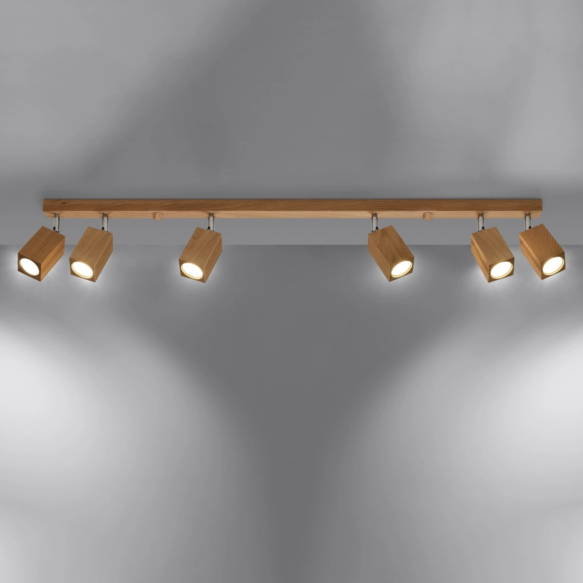Plafon drewniany KEKE 6 od Sollux to nie tylko funkcjonalne oświetlenie, ale także wyrazisty element dekoracyjny, który podkreśli indywidualny charakter Twojego wnętrza. Wybierając ten model, zyskujesz trwałe i efektowne rozwiązanie, które przez lata będzie zachwycać swoją estetyką oraz niezawodnością. Pozwól, aby ciepło dębowego drewna stało się sercem Twojego salonu lub kuchni!