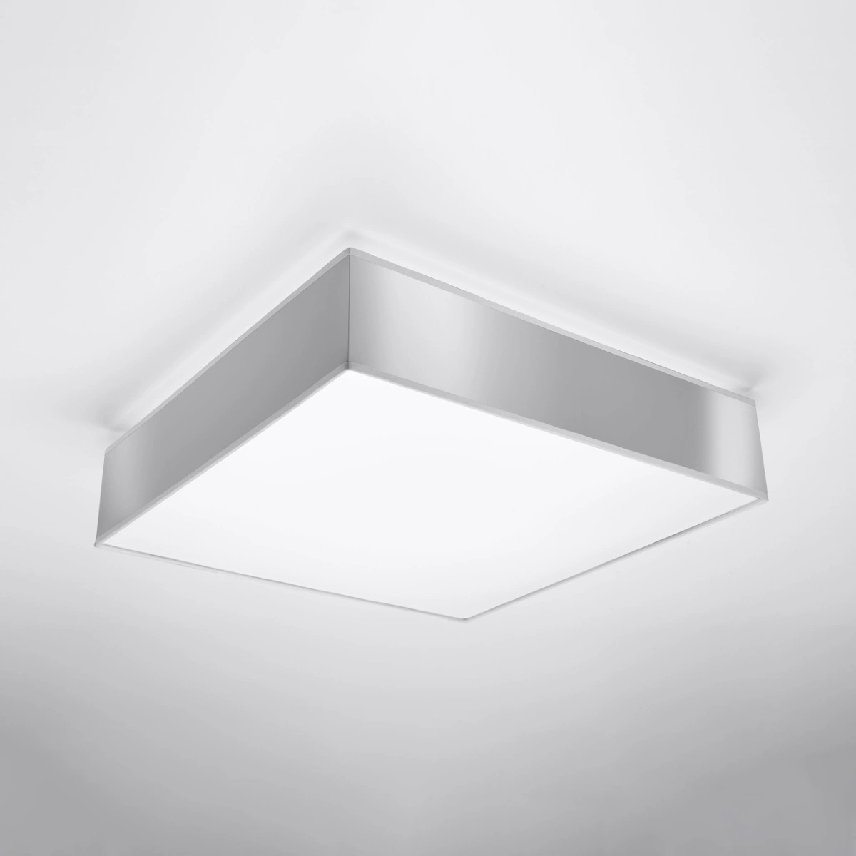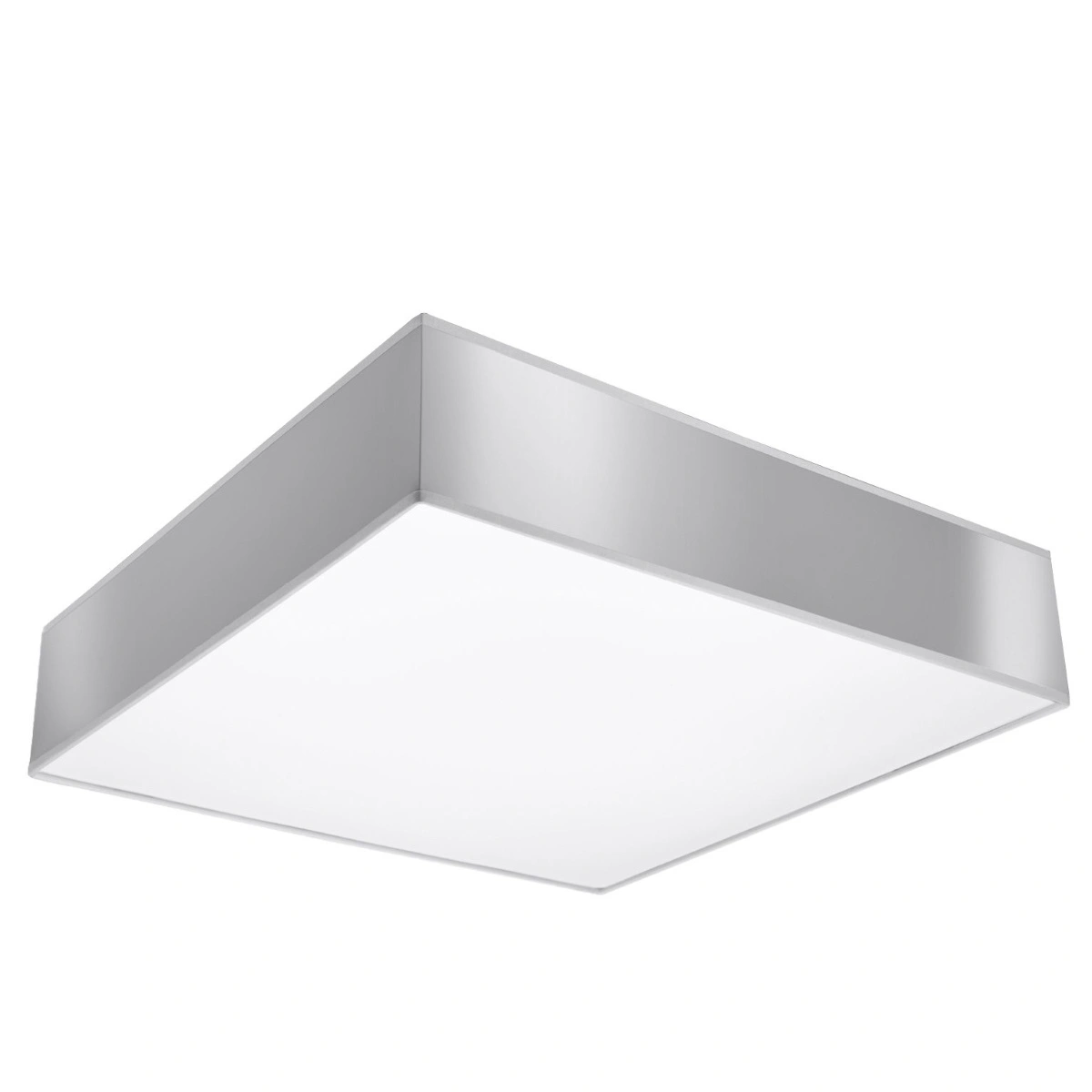 Plafon zaprojektowany jest w prostopadłościenną formę, opartą na kształcie kwadratu. Metalowa obudowa dostępna jest w trzech kolorach: białym, czarnym i szarym. Możliwy jest również wybór wielkości spośród szerokości 25, 35, 45 i 55cm. Gwint E27 umieszczony w środku lampy jest bardzo uniwersalny i można wkręcić do niego żarówki tradycyjne, LED, halogenowe czy energooszczędne. Lampa zaprojektowana jest także w taki sposób, aby montaż był niezwykle prosty i szybki.