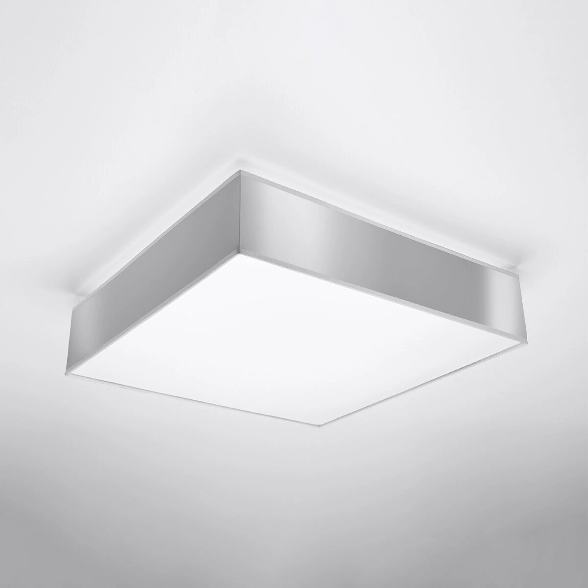 Plafon zaprojektowany jest w prostopadłościenną formę, opartą na kształcie kwadratu. Metalowa obudowa dostępna jest w trzech kolorach: białym, czarnym i szarym. Możliwy jest również wybór wielkości spośród szerokości 25, 35, 45 i 55cm. Gwint E27 umieszczony w środku lampy jest bardzo uniwersalny i można wkręcić do niego żarówki tradycyjne, LED, halogenowe czy energooszczędne. Lampa zaprojektowana jest także w taki sposób, aby montaż był niezwykle prosty i szybki.