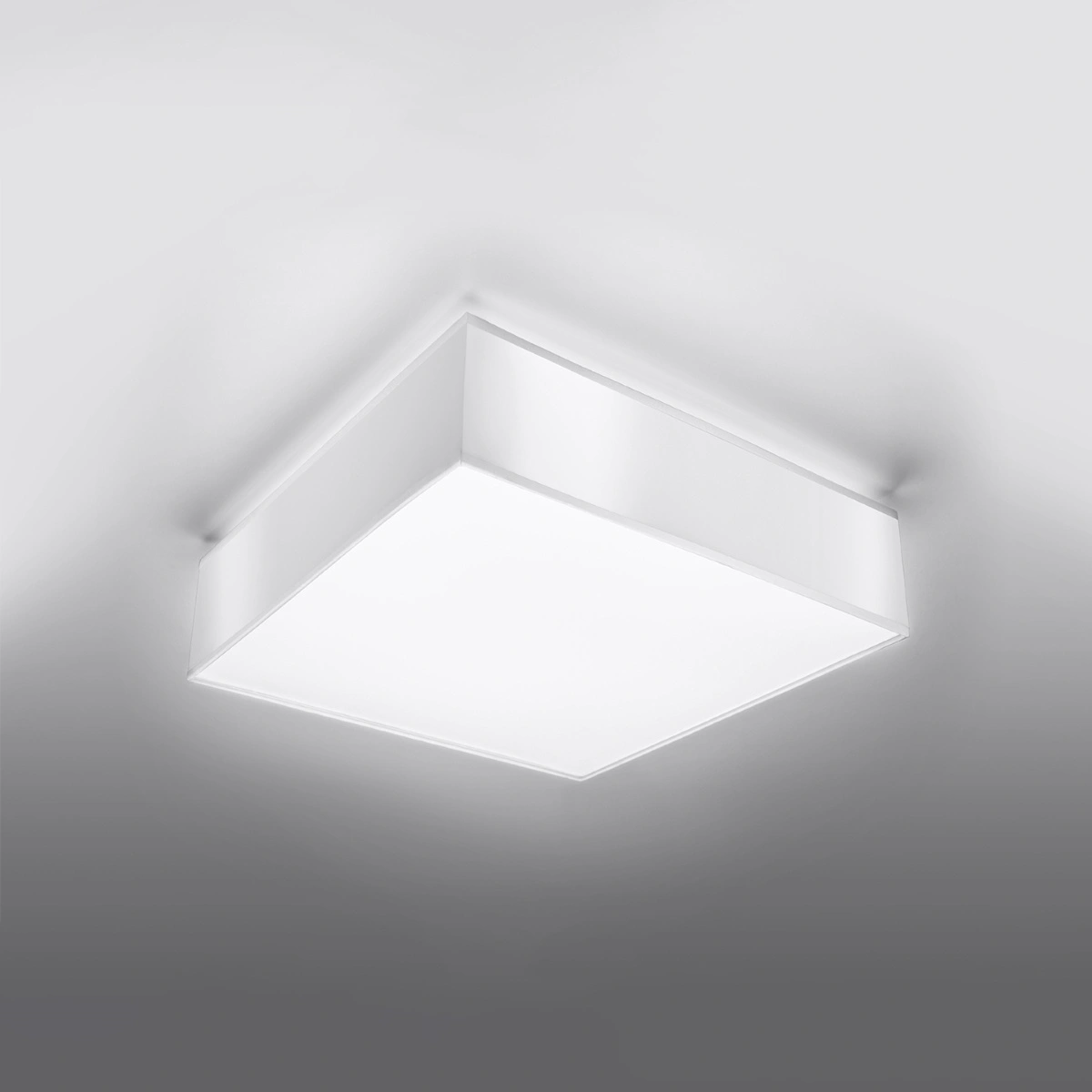 Kwadratowy plafon Horus 55 to rozwiązanie, które doskonale wpisuje się w potrzeby przestrzeni wymagających mocnego, a zarazem przyjemnego oświetlenia. Dzięki czterem źródłom światła (E27, max 60W każde) skutecznie rozjaśnia nawet większe pomieszczenia, a jego wysokość 11 cm sprawia, że nie przytłacza wnętrza. Biały kolor klosza idealnie komponuje się z jasnymi ścianami lub kontrastuje z ciemniejszymi aranżacjami, dodając im lekkości. To plafon sufitowy, który sprawdzi się zarówno nad stołem w kuchni, jak i w centrum salonu lub nad łóżkiem w sypialni.