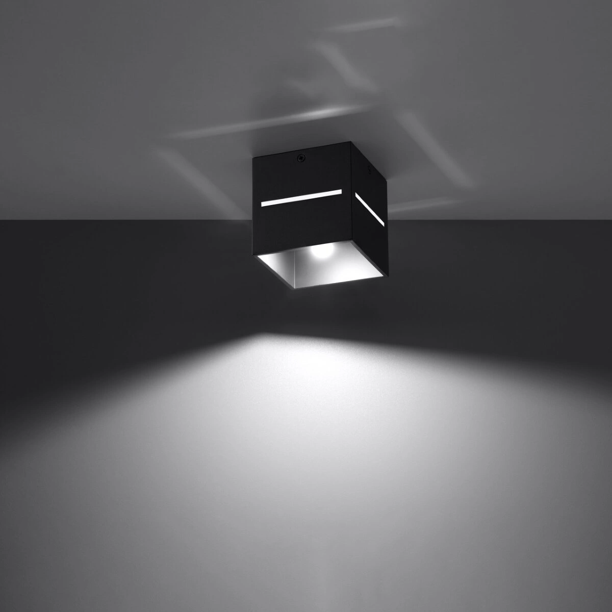 Plafon Lobo oprócz zdobienia przestrzeni doda nastrojowego oświetlenia wnętrzu. Lampa zaprojektowana jest w formie prostopadłościanu z podłużnym wycięciem, które generować będzie bardzo ładny wzór ze światła nocą. Loftowy kinkiet do idealnie dopasuje się do przestrzeni industrialnych, nowoczesnych czy klasycznych lub skandynawskich. Świetnie sprawdzi się na korytarzu, w salonie czy sypialni. Stanowić będzie również zdobny dodatek do sklepu, restauracji czy hotelu.