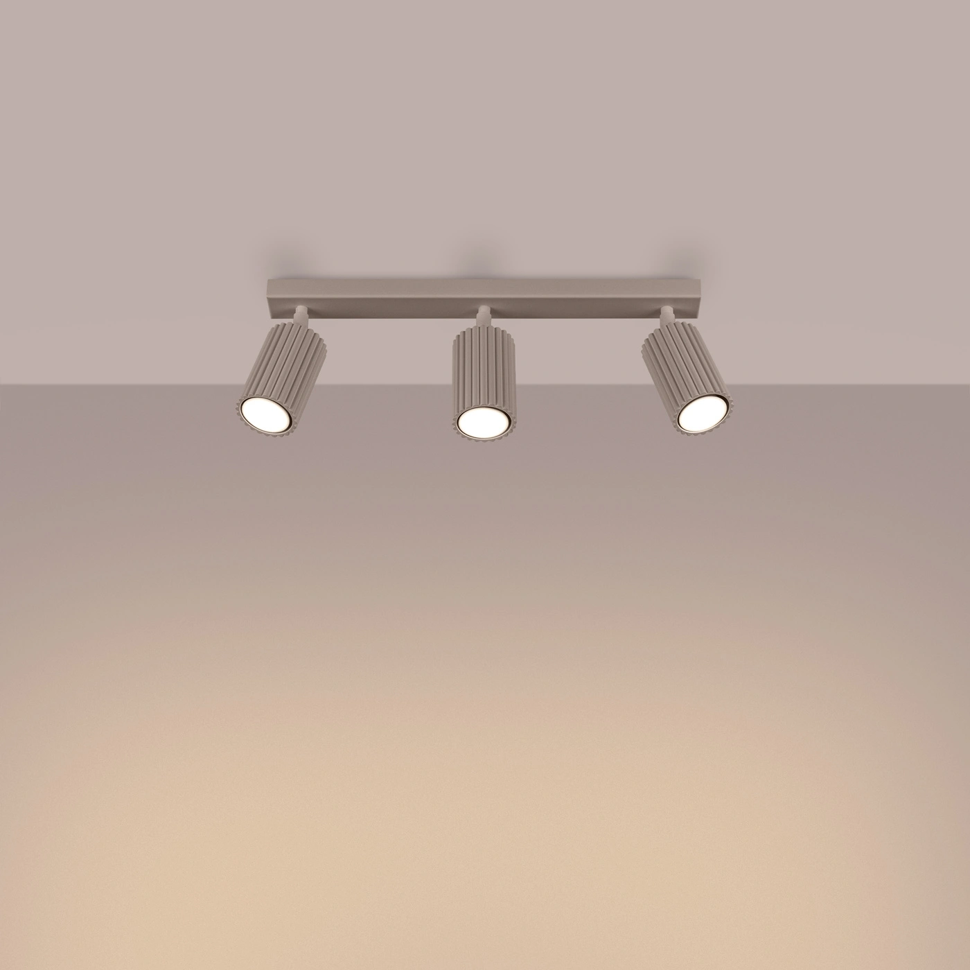 Plafon nowoczesny KARBON 3L taupe beżowy marki Sollux Lighting to minimalistyczna oprawa sufitowa wykonana z trwałego aluminium, wyposażona w trzy regulowane punkty świetlne na żarówki GU10. Model ten wyróżnia się subtelnym, ciemnym beżem oraz precyzyjną konstrukcją, która doskonale sprawdzi się jako plafon do salonu, kuchni, jadalni czy przedpokoju. Kompaktowa szerokość 6,5 cm i długość 16,5 cm pozwalają na łatwą aranżację nawet w wąskich przestrzeniach, a wysokość 45 cm zapewnia optymalne oświetlenie strefowe.