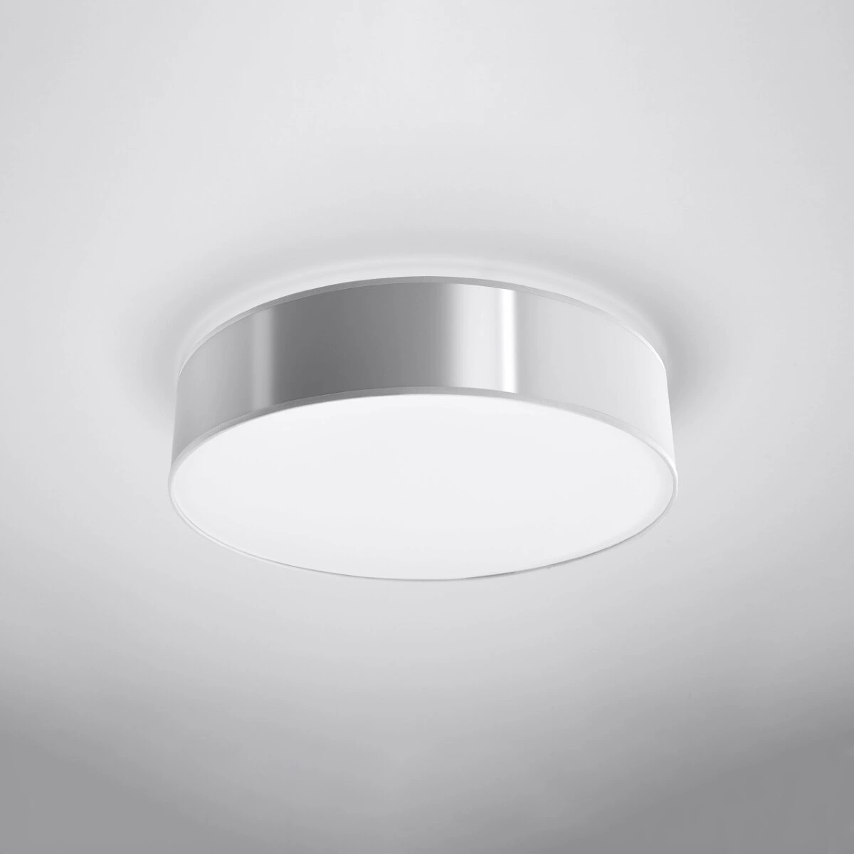 Okrągły plafon Arena dostępny jest w wielu konfiguracjach. Do wyboru oferujemy Ci szary, biały i czarny metalowy klosz. Jego kształt zbudowany jest cylindryczny, o czterech różnych średnicach: 25, 35, 45 i 55 cm. Mleczne tworzywo rozprowadza światło żarówki równomiernie po przestrzeni, zapewniając przyjemny dla oka efekt. Gwint E27 jest uniwersalnym wejściem dla żarówek tradycyjnych, LED czy energooszczędnych. Prosta forma to również duża łatwość czyszczenia.
