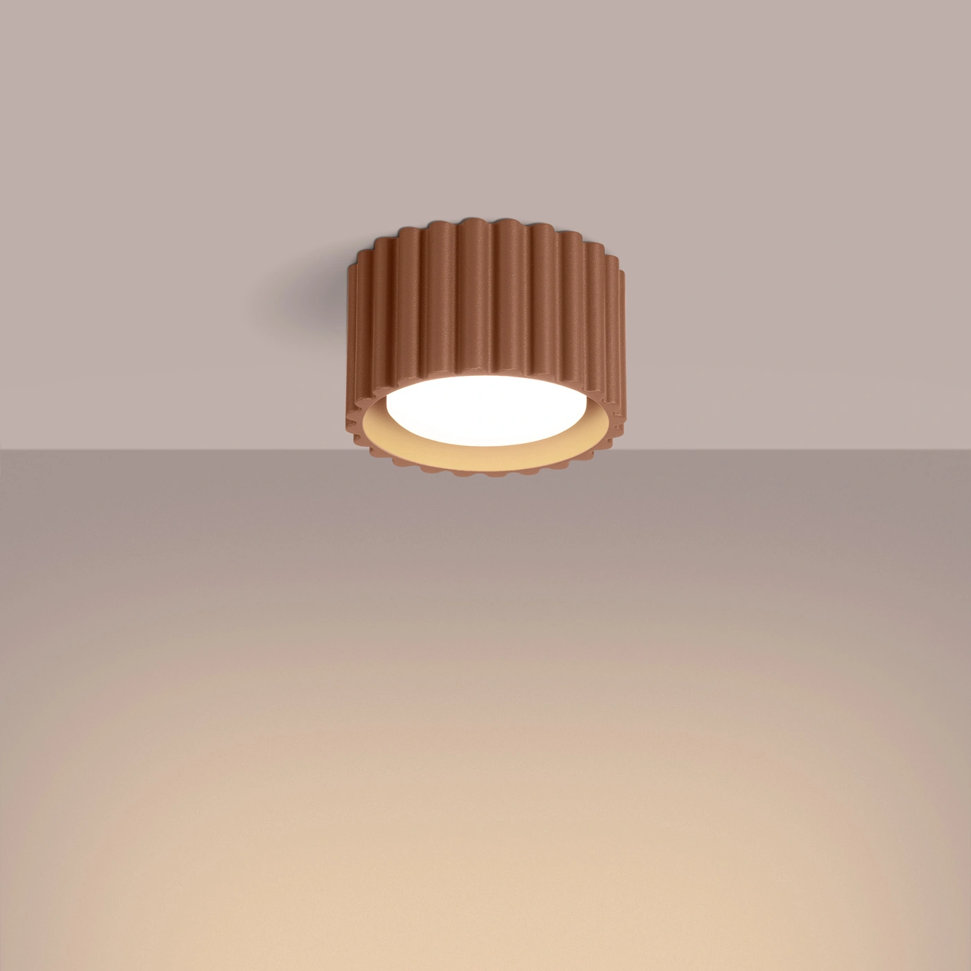 Dzięki swojemu ponadczasowemu wzornictwu, plafon okrągły AURA 1 kawowy nie tylko oświetla, ale również zdobi przestrzeń. Delikatna, ryflowana powierzchnia nadaje mu wyjątkowego charakteru, a neutralna barwa pozwala na łatwe dopasowanie do różnych odcieni ścian i mebli. To doskonały wybór, jeśli szukasz oświetlenia sufitowego, które będzie zarówno praktyczne, jak i efektowne – sprawdzi się zarówno w roli lampy do salonu, jak i jako plafon do kuchni czy jadalni.