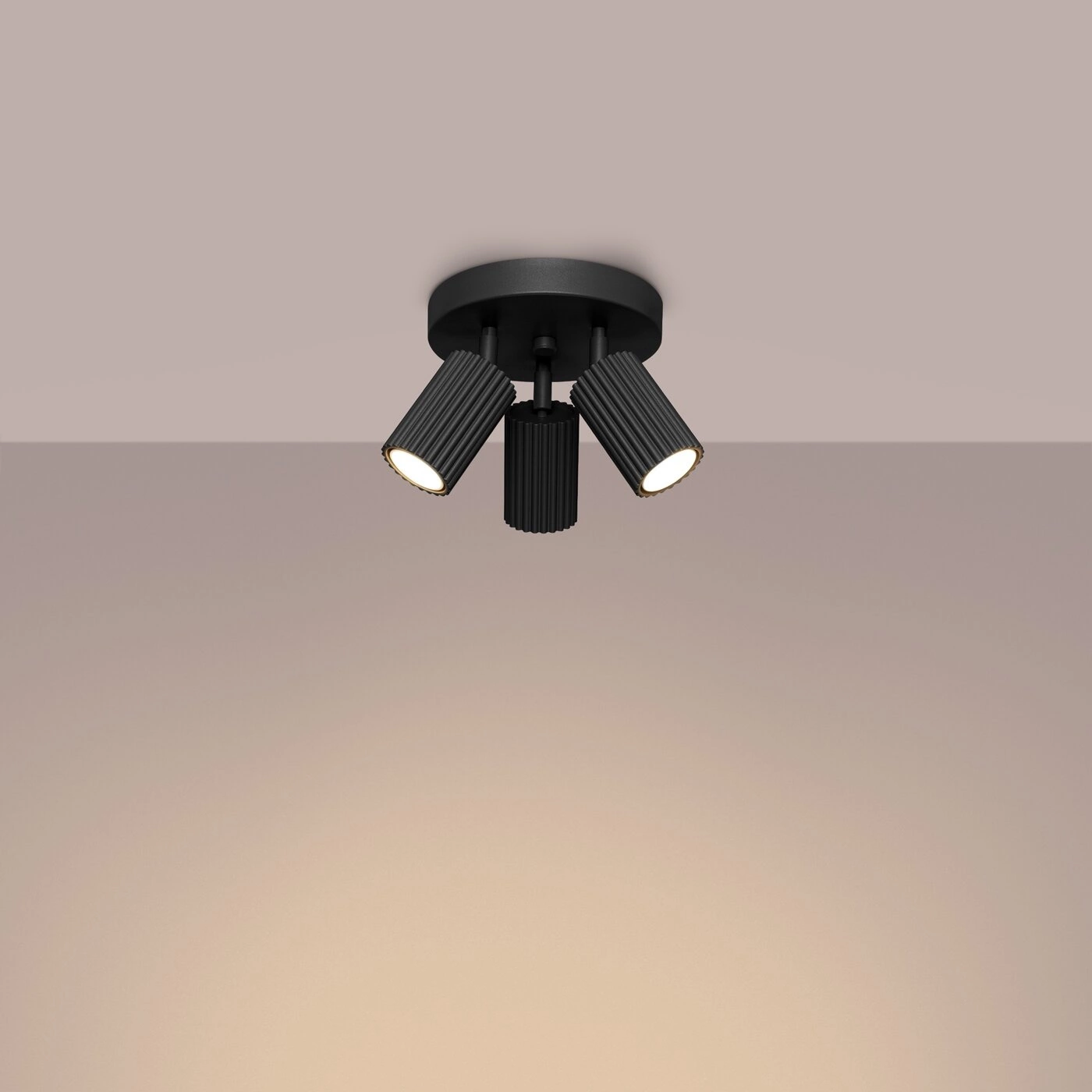 Plafon sufitowy Karbon 3P marki SOLLUX LIGHTING to połączenie minimalistycznego, nowoczesnego stylu z funkcjonalnością, która sprawdzi się zarówno w salonie, jak i w sypialni czy przedpokoju. Wykonany z wytrzymałego aluminium, czarny plafon o geometrycznej formie i ruchomych kloszach pozwala na indywidualne ukierunkowanie światła, zapewniając optymalne doświetlenie wnętrza. Trzy źródła światła (oprawa GU10) gwarantują równomierne oświetlenie przestrzeni o szerokości i głębokości 19,5 cm oraz wysokości 18 cm.