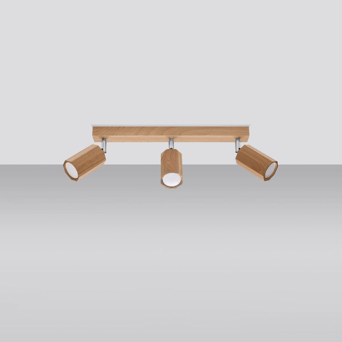 Plafon sufitowy drewniany Zeke 3 marki Sollux to nowoczesna lampa sufitowa wykonana z naturalnego drewna dębowego w kolorze dąb, wyposażona w trzy źródła światła GU10. Dzięki kompaktowej formie (wysokość 20 cm, szerokość 5 cm, długość 45 cm) doskonale sprawdzi się jako plafon do salonu, kuchni lub sypialni, zapewniając nie tylko optymalne oświetlenie, ale i wyjątkowy, przytulny klimat we wnętrzu. Solidna konstrukcja i uniwersalny design sprawiają, że to wybór na lata dla osób ceniących styl oraz funkcjonalność.