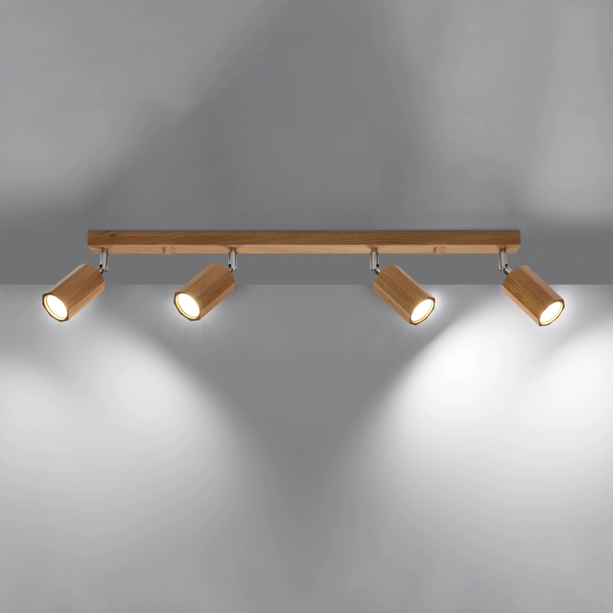 Plafon sufitowy drewniany Zeke 4 marki Sollux to propozycja dla osób ceniących naturalne materiały i nowoczesny, minimalistyczny design. Wykonany z naturalnego drewna dębowego, o długości 80 cm i subtelnej szerokości 5 cm, ten plafon wyposażono w cztery niezależne źródła światła z oprawą GU10, co pozwala na efektywne oświetlenie salonu, kuchni lub sypialni. Geometryczna, prostokątna forma oraz wyrazisty dębowy kolor sprawiają, że Zeke 4 harmonijnie łączy funkcjonalność z estetyką inspirowaną stylem skandynawskim.
