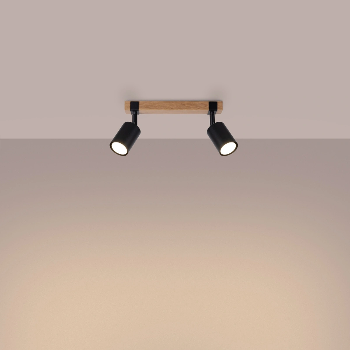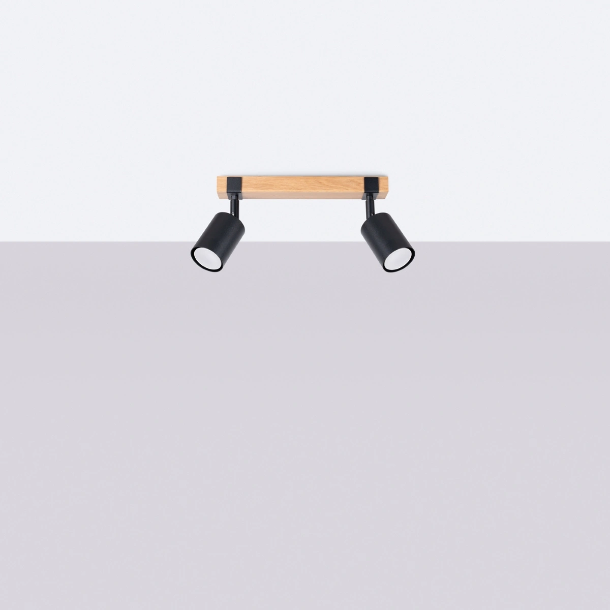 Plafon sufitowy FAGER 2 marki SOLLUX LIGHTING to połączenie minimalistycznej formy, funkcjonalności i skandynawskiej estetyki. Okrągłe, czarne spoty z naturalnym akcentem drewna nadają lampie wyjątkowy charakter, a kompaktowe wymiary (wysokość 17,2 cm, szerokość 6 cm, głębokość 38 cm) sprawiają, że doskonale sprawdzi się zarówno w salonie, sypialni, jak i jadalni czy przedpokoju. Dwa regulowane źródła światła na żarówki GU10 pozwalają precyzyjnie doświetlić wybrane strefy wnętrza, dając pełną kontrolę nad atmosferą w domu.