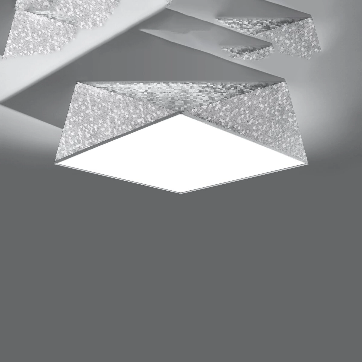 Plafon Hexa to lampa o bardzo ciekawej konstrukcji. Choć jej kształt wydaje się niesymetryczny, tak naprawdę jest bardzo geometryczny i najszersza część lampy zbudowana jest na bazie kwadratu. Regularne zagięcia dodają ciekawego efektu lampie, przez co staje się również niebanalną ozdobą wnętrza. Plafon świetnie pasować będzie do domowych przestrzeni takich jak sypialnia, kuchnia czy przedpokój. Sprawdzi się również w przestrzeniach kawiarni  czy poczekalni.