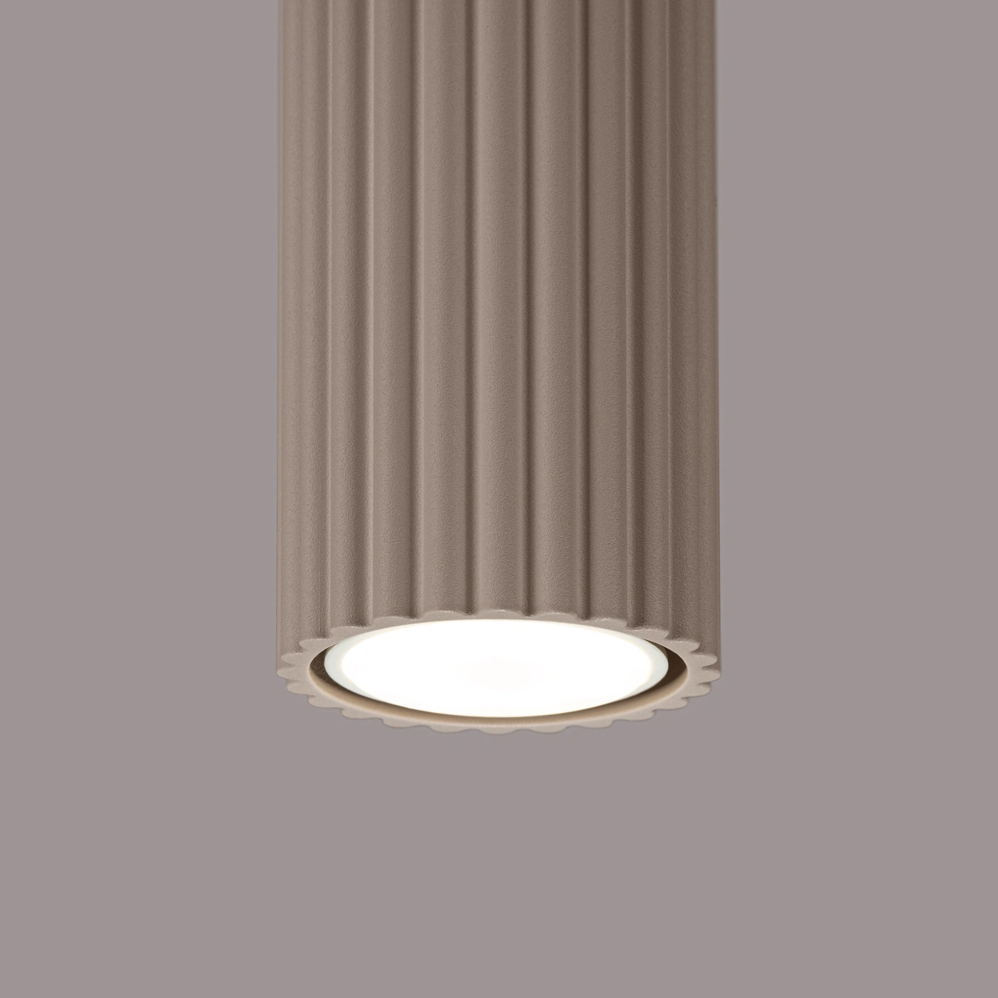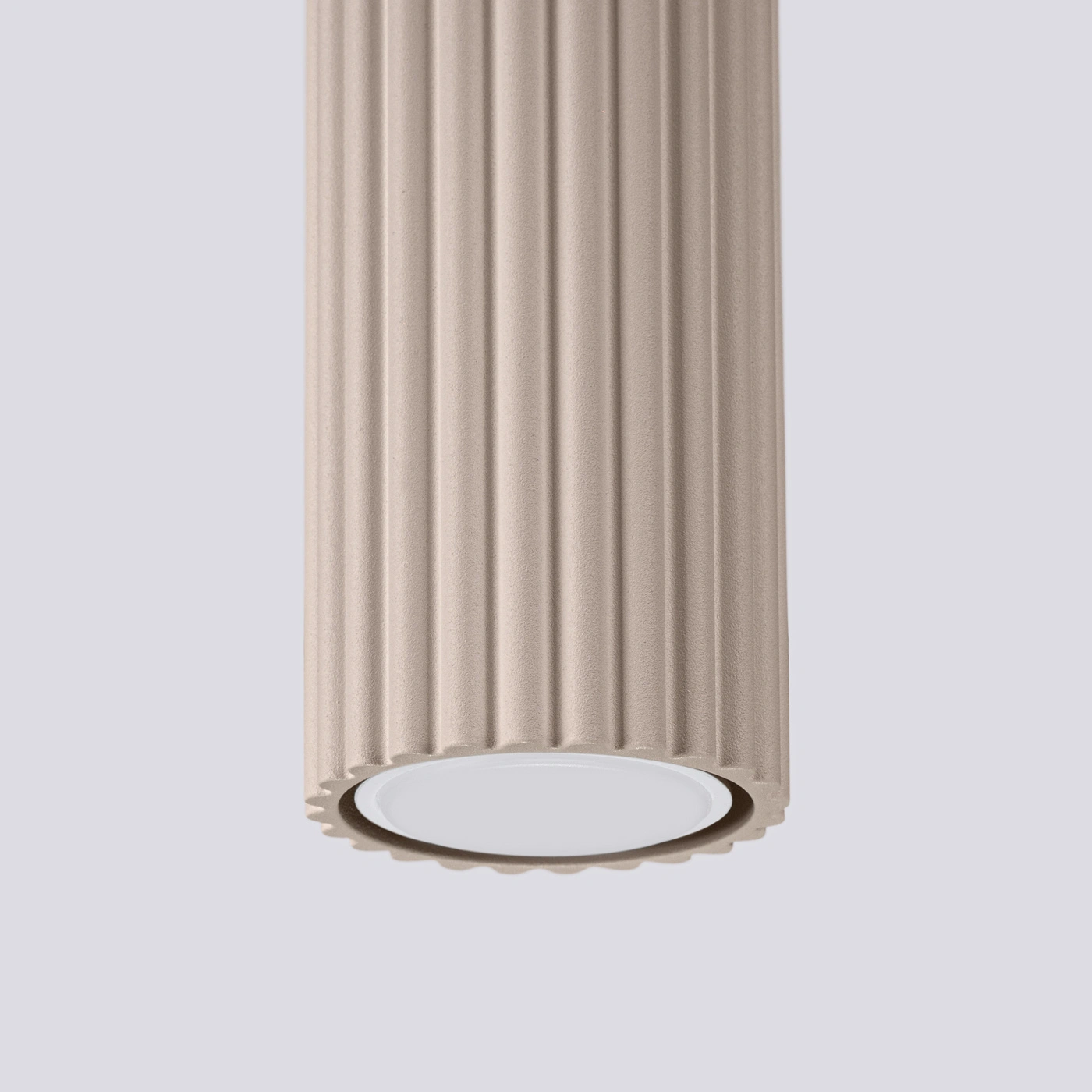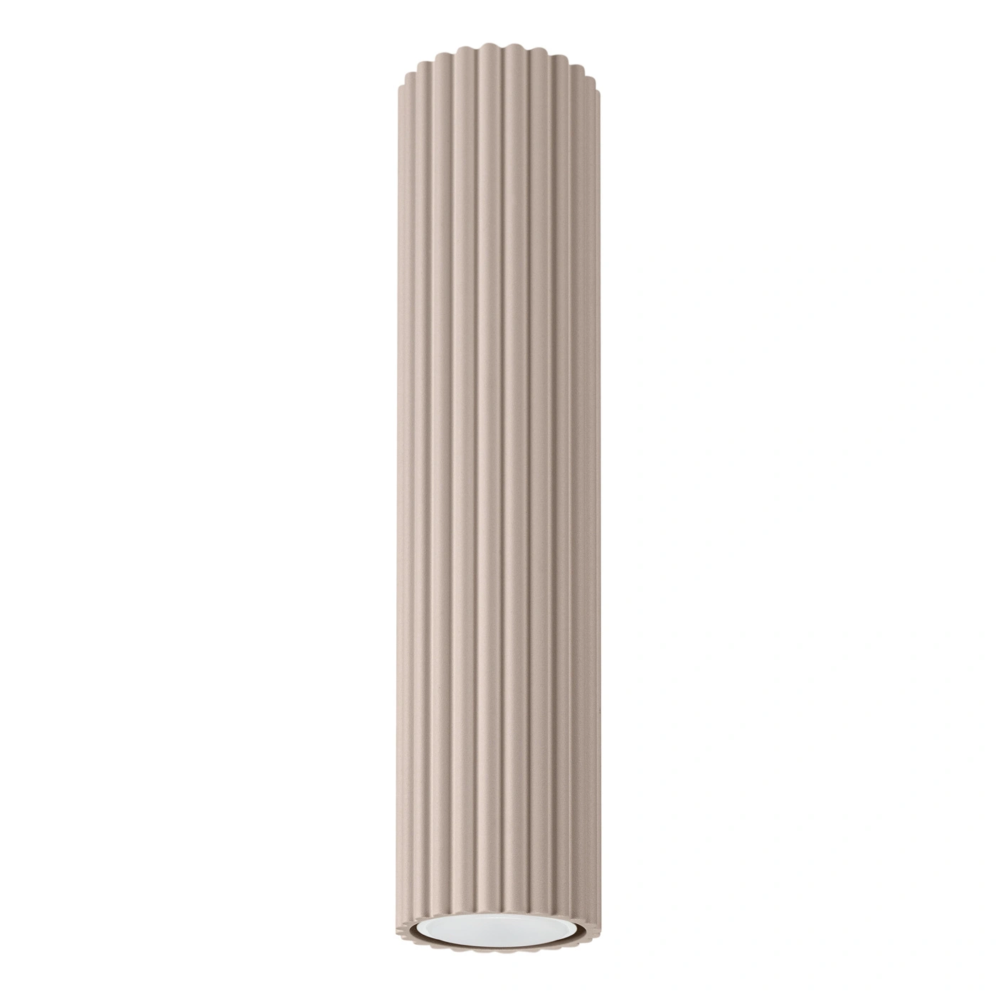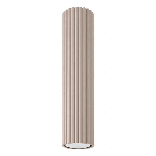 Plafon KARBON 30 zachwyca prostą, cylindryczną formą, która idealnie oddaje ducha nowoczesnego stylu. Ryflowana powierzchnia aluminium nadaje mu wyrazistości i sprawia, że staje się nie tylko źródłem światła, ale również stylowym elementem dekoracyjnym. Beżowy odcień wnosi do aranżacji ciepło oraz subtelną nutę luksusu, doskonale komponując się zarówno z jasnymi, jak i ciemniejszymi barwami ścian oraz mebli.