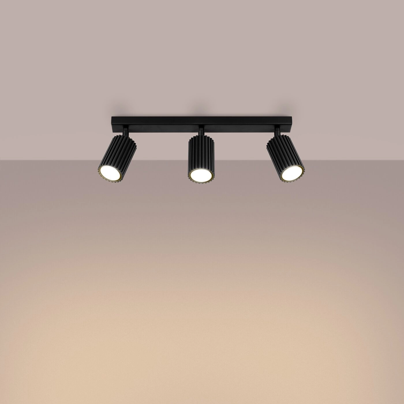 - Plafon KARBON 3L czarny to nowoczesne oświetlenie, które wyróżnia się swoją unikalną ryflowaną strukturą.