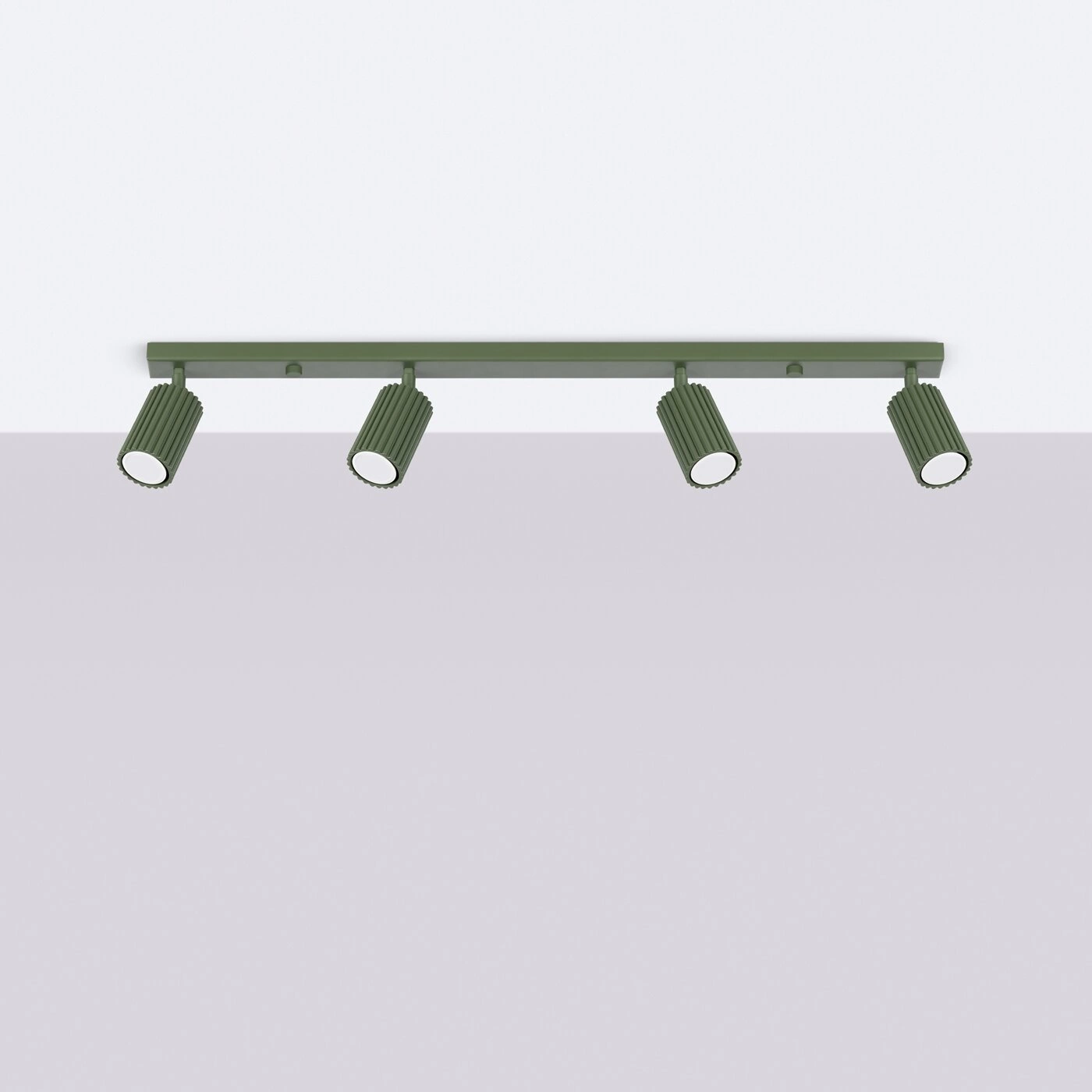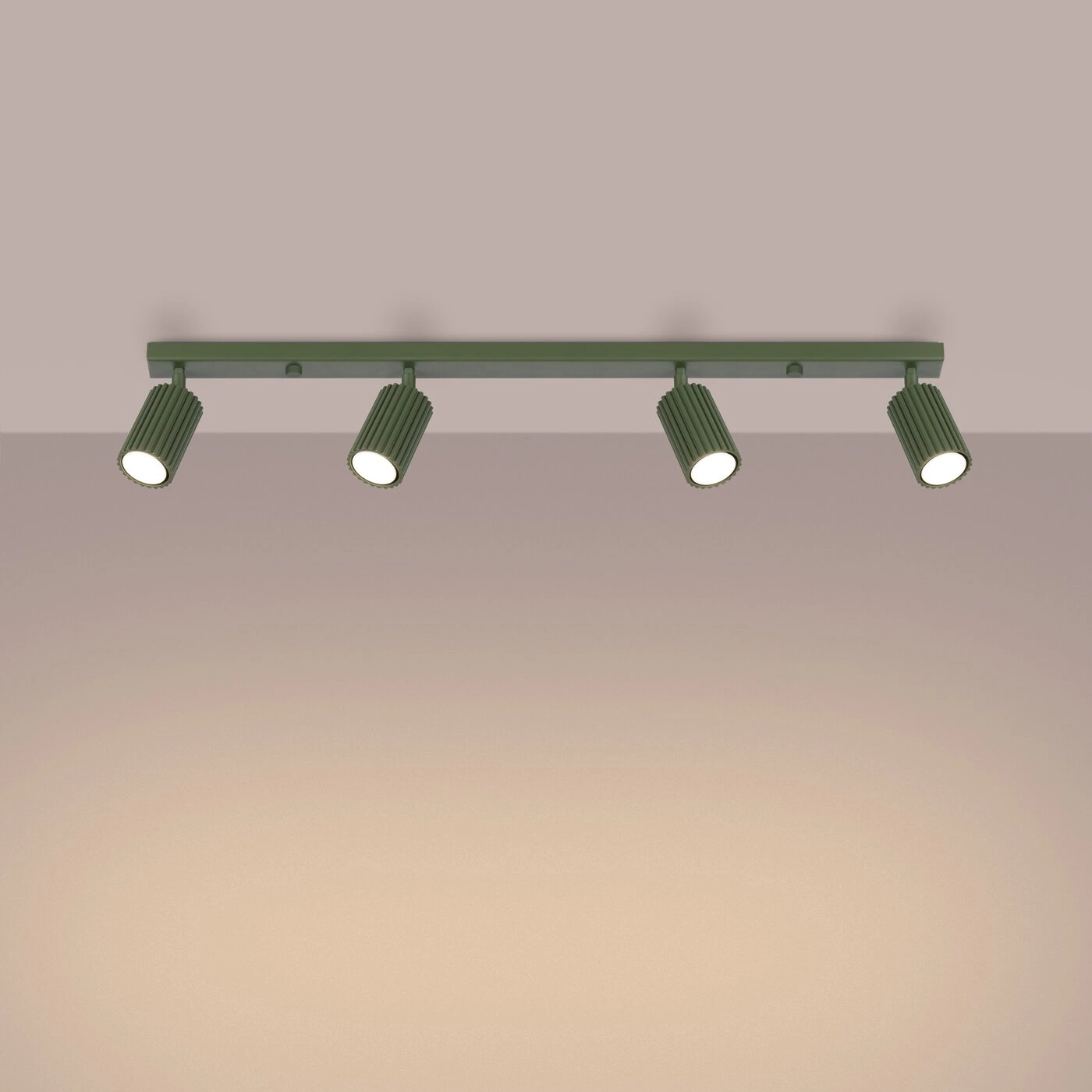 Plafon sufitowy KARBON 4L marki SOLLUX LIGHTING to minimalistyczna lampa o długości 81 cm, wykonana z trwałego aluminium w eleganckim, oliwkowo-zielonym kolorze. Wyposażony w cztery ruchome klosze na żarówki GU10, pozwala na precyzyjne oświetlenie wybranych stref w salonie, sypialni, przedpokoju lub gabinecie. Subtelne, matowe wykończenie i smukła forma czynią z tego plafonu ponadczasową propozycję do nowoczesnych wnętrz.