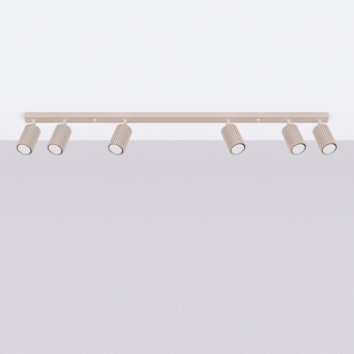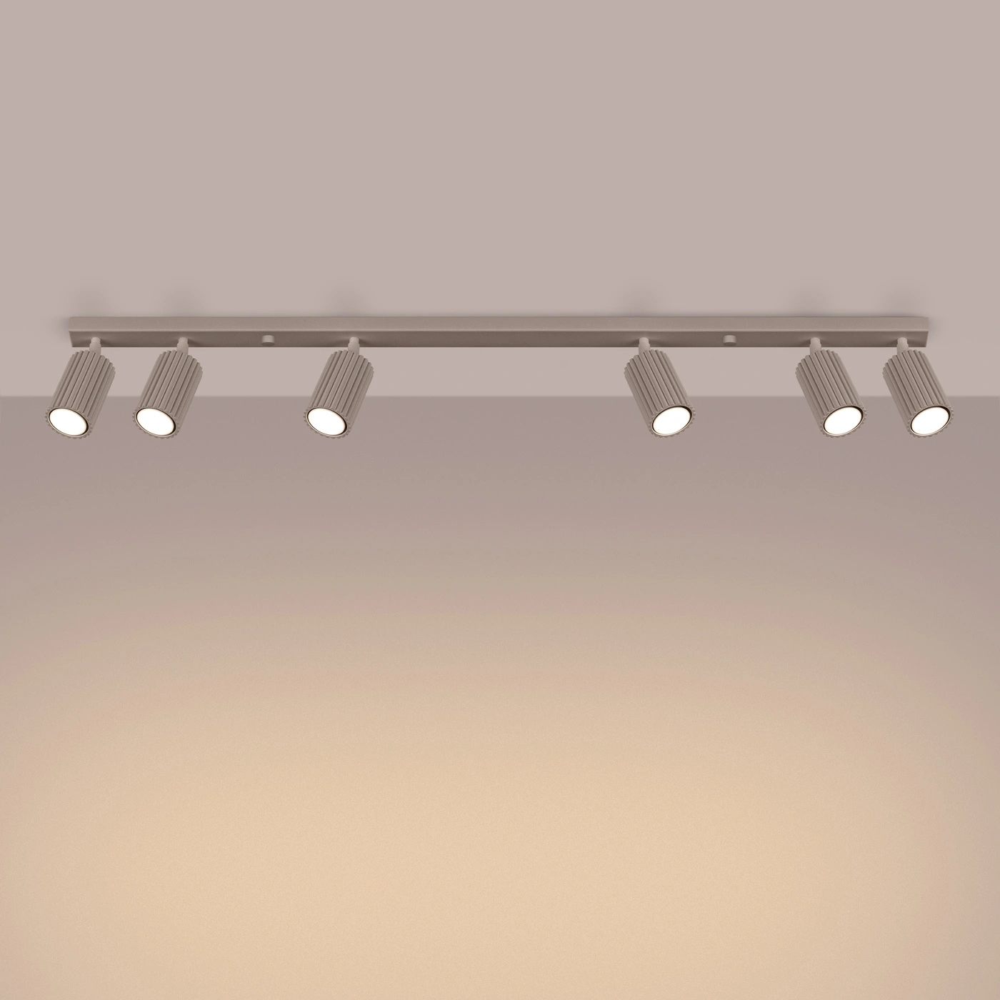 Plafon sufitowy KARBON 6L marki SOLLUX LIGHTING to propozycja dla miłośników nowoczesnych, minimalistycznych wnętrz. Wykonany z wytrzymałego aluminium w eleganckim, ciemnym beżu, zachwyca smukłą formą i funkcjonalnością. Plafon wyposażony jest w sześć regulowanych punktów świetlnych na żarówki GU10, co pozwala na precyzyjne doświetlenie salonu, kuchni, jadalni lub przedpokoju.
