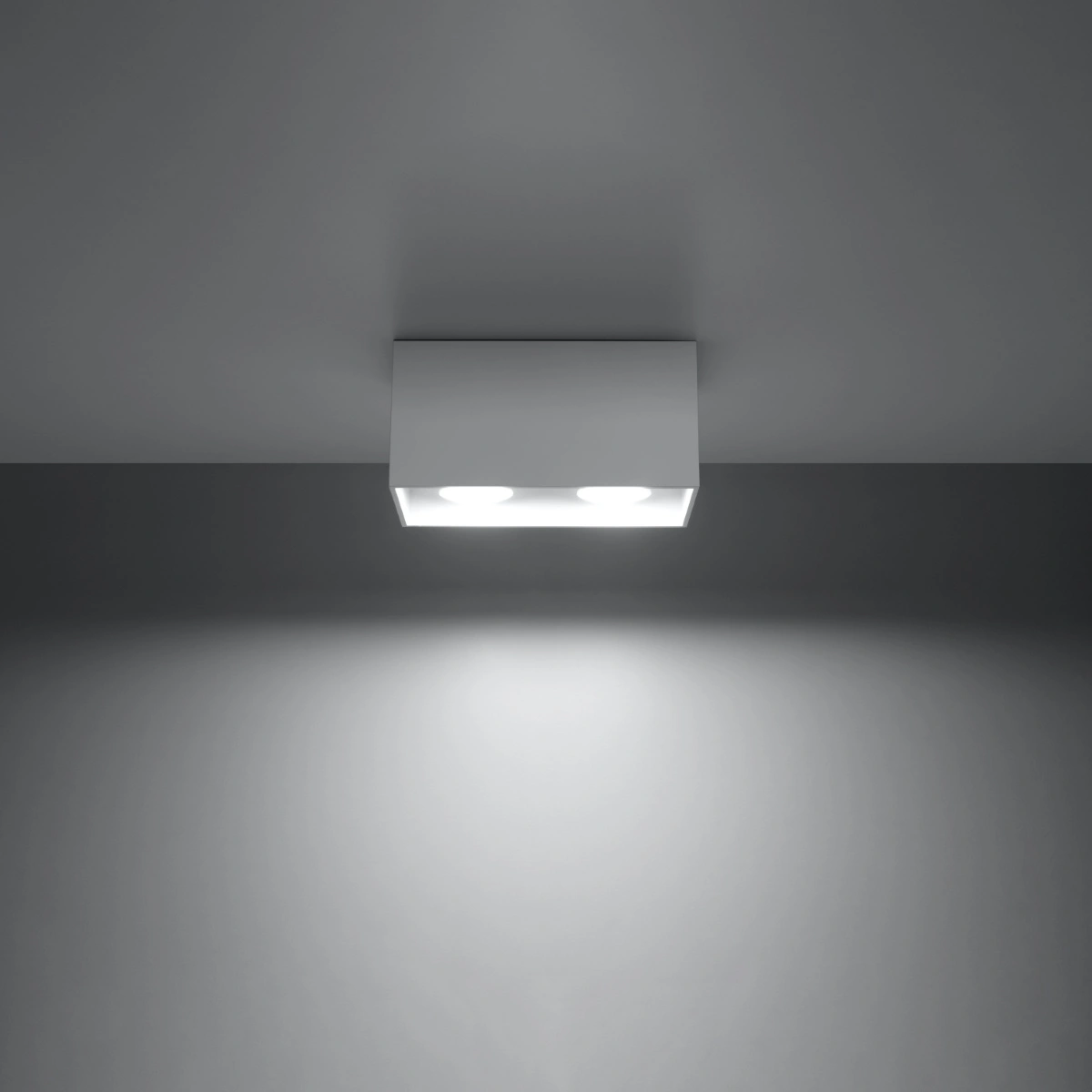Plafon sufitowy kwadratowy biały QUAD MAXI marki Sollux Lighting to nowoczesna lampa o geometrycznej formie, wykonana z wytrzymałego aluminium. Ma kompaktowe wymiary – 10 cm wysokości i 20 cm głębokości, dzięki czemu idealnie sprawdzi się w pomieszczeniach takich jak salon, kuchnia czy sypialnia. Zastosowanie dwóch źródeł światła GU10 pozwala na równomierne oświetlenie wnętrza, a uniwersalny biały kolor harmonijnie łączy się z nowoczesnym i industrialnym stylem aranżacji.