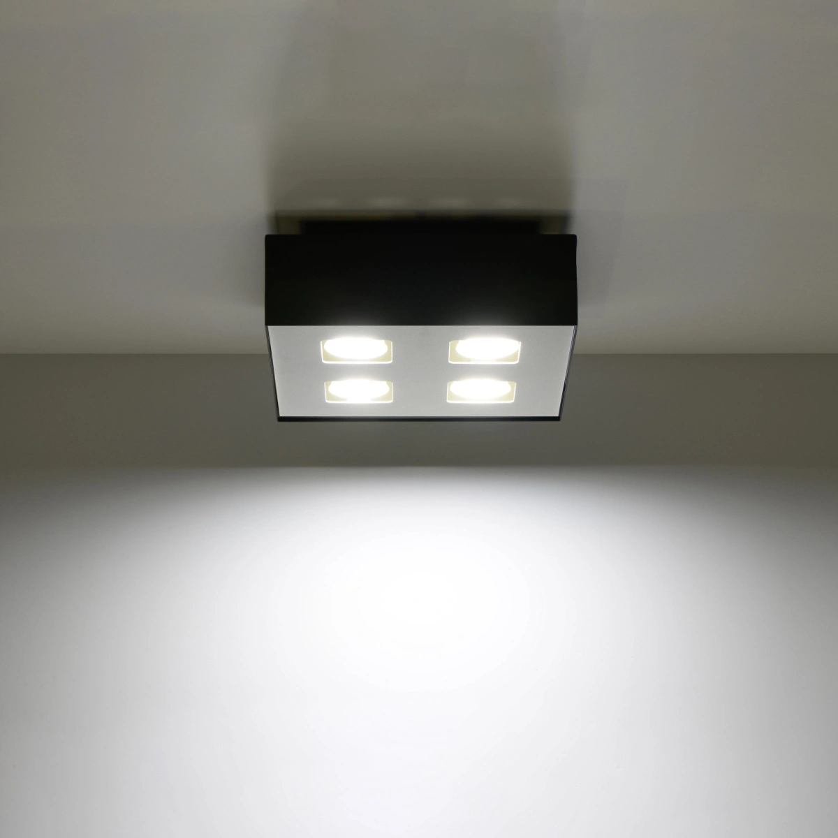 Dzięki czterem źródłom światła plafon kwadratowy Mono 4 równomiernie doświetla całe pomieszczenie, eliminując cienie i tworząc przyjazną atmosferę. Idealnie sprawdzi się jako główne oświetlenie w kuchni, gdzie liczy się funkcjonalność i jasność, w salonie – gdzie podkreśli nowoczesny charakter wnętrza, oraz w przedpokoju, gwarantując komfort już od wejścia do domu. Możliwość wyboru żarówek GU10 pozwala dopasować barwę i natężenie światła do indywidualnych potrzeb.