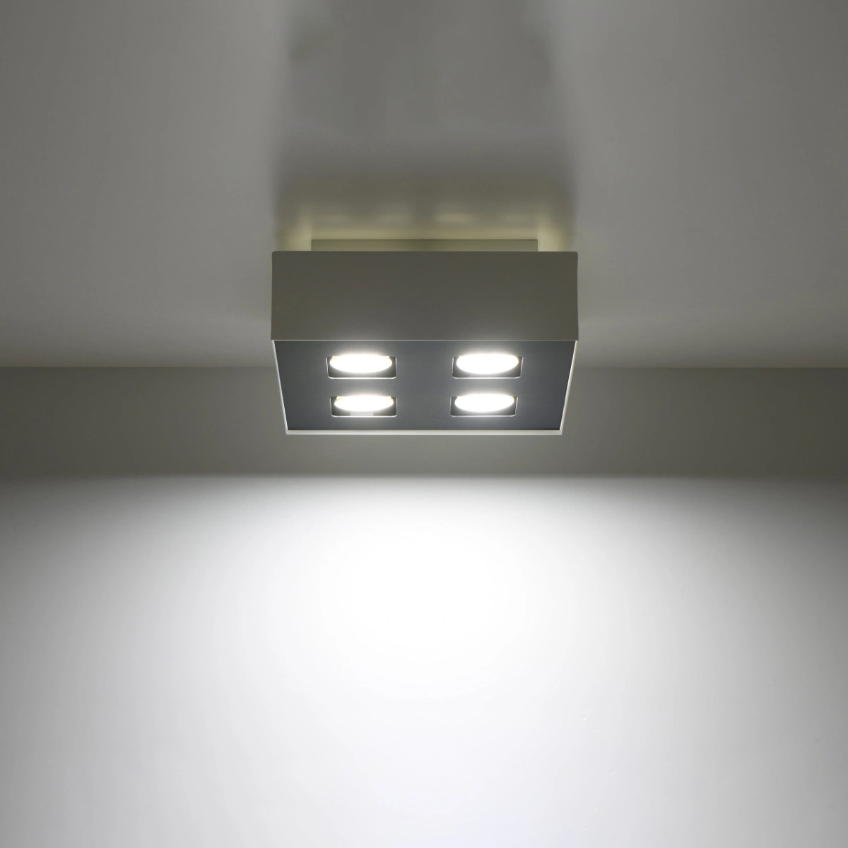 Plafon sufitowy kwadratowy MONO 4 marki Sollux to nowoczesna lampa o wymiarach 24×24×11 cm, wykonana z trwałej stali w eleganckim, białym kolorze. Wyposażona w cztery niezależne źródła światła na oprawki GU10, doskonale sprawdzi się jako główne oświetlenie do salonu, kuchni czy sypialni. Kwadratowa forma i minimalistyczny design czynią ten plafon wyjątkowym wyborem do wnętrz urządzonych w stylu nowoczesnym.