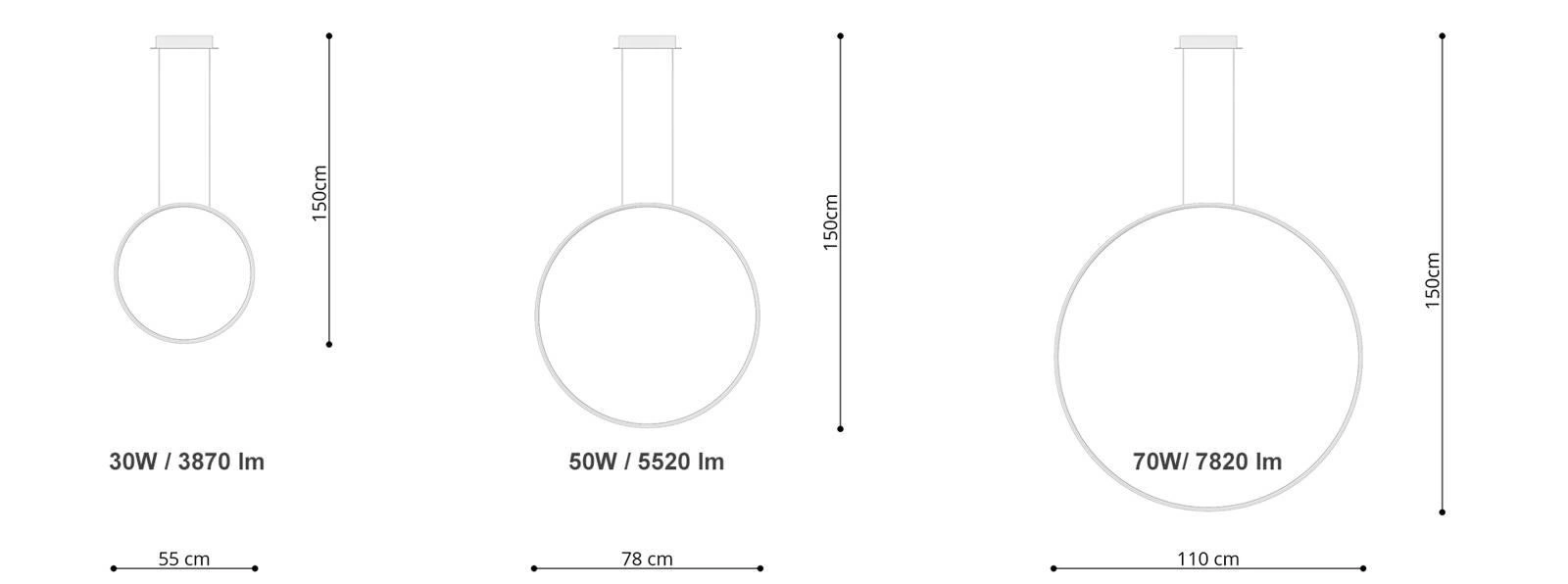 Plafon Rio to przede wszystkim funkcjonalność. Jego okrągły kształt rozprowadzać będzie najwydajniej światło, a umieszczona w środku żarówka LED (dołączona w zestawie) wystarczy na cały czas użytkowania lampy. Dostępne są trzy rozmiary lampy o średnicach 55, 78 i 110 cm. Wyborowi podlega również kolor światła żarówki. W zależności od Twoich upodobań, wybrać możesz zestaw z żarówką o ciepłej barwie (3000K) lub zimnej bieli (4000K). Ten piękny i elegancki przedmiot pasował będzie zarówno do salonu, jadalni czy przedpokoju, lecz również do sklepu, kawiarni czy restauracji.
