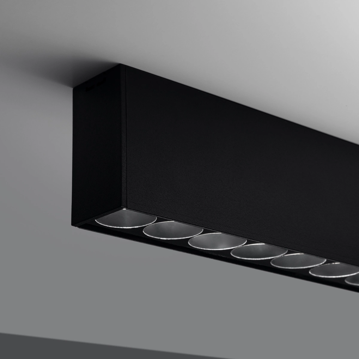 Plafon SOREN posiada czarną oprawę żarówki LED, która dodaje mu elegancji i stylu. Oprawa oświetleniowa została tak zaprojektowana, aby źródło światła było cofnięte w głąb, co gwarantuje równomierne rozprowadzenie światła. Dzięki temu lampa doskonale sprawdzi się zarówno w salonie, jak i w sypialni, jadalni czy pokoju młodzieżowym.