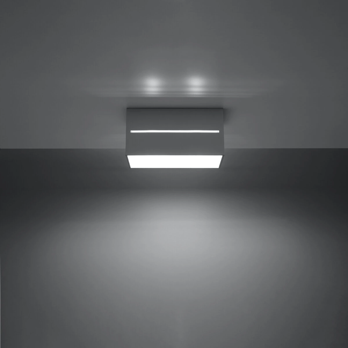Plafon Lobo oprócz zdobienia przestrzeni doda nastrojowego oświetlenia wnętrzu. Lampa zaprojektowana jest w formie prostopadłościanu z podłużnym wycięciem, które generować będzie bardzo ładny wzór ze światła nocą. Loftowy kinkiet do idealnie dopasuje się do przestrzeni industrialnych, nowoczesnych czy klasycznych lub skandynawskich. Świetnie sprawdzi się na korytarzu, w salonie czy sypialni. Stanowić będzie również zdobny dodatek do sklepu, restauracji czy hotelu.