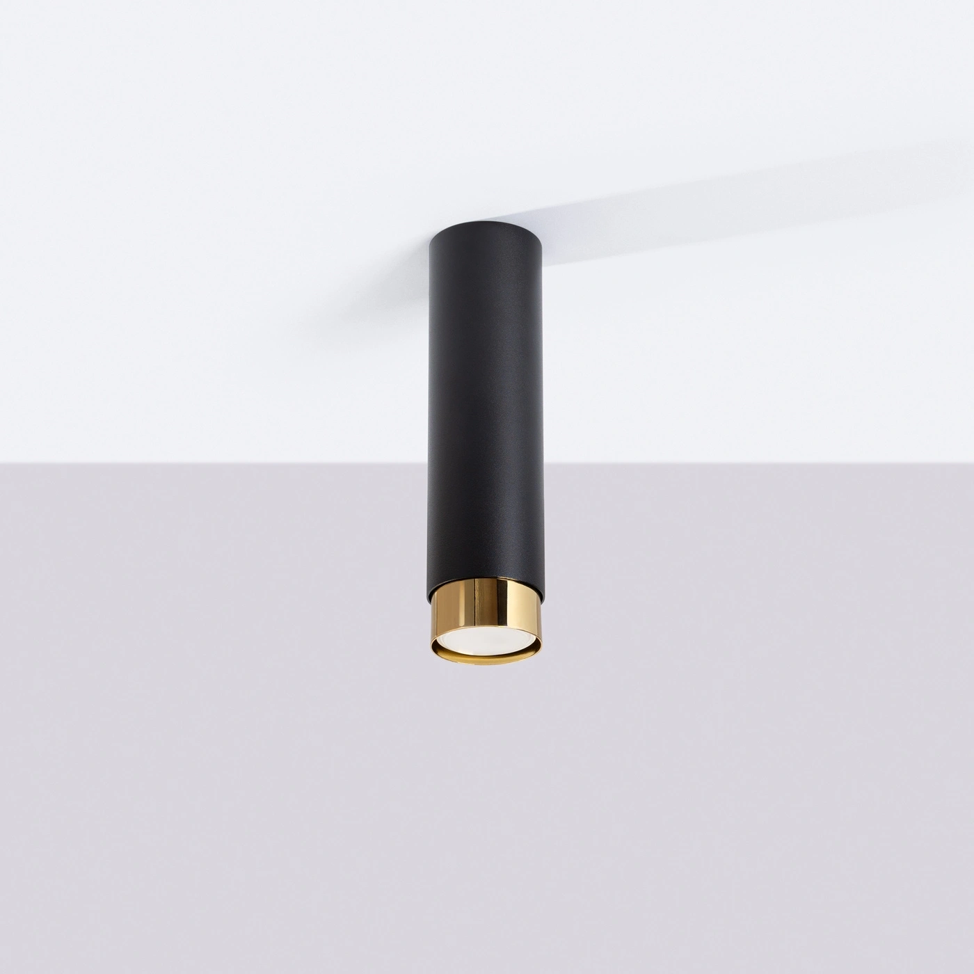 Plafon sufitowy NERO 22,5 marki Sollux Lighting to nowoczesna lampa w kolorze czarnym ze złotymi akcentami, stworzona z wytrzymałej stali. Smukła forma o wysokości 22,5 cm i minimalistyczny design czynią ją idealnym wyborem do salonu, sypialni, przedpokoju lub gabinetu. Dzięki oprawie żarówki GU10 i światłu skierowanemu w dół, plafon NERO zapewnia precyzyjne, przyjemne oświetlenie, które podkreśla charakter współczesnych wnętrz.