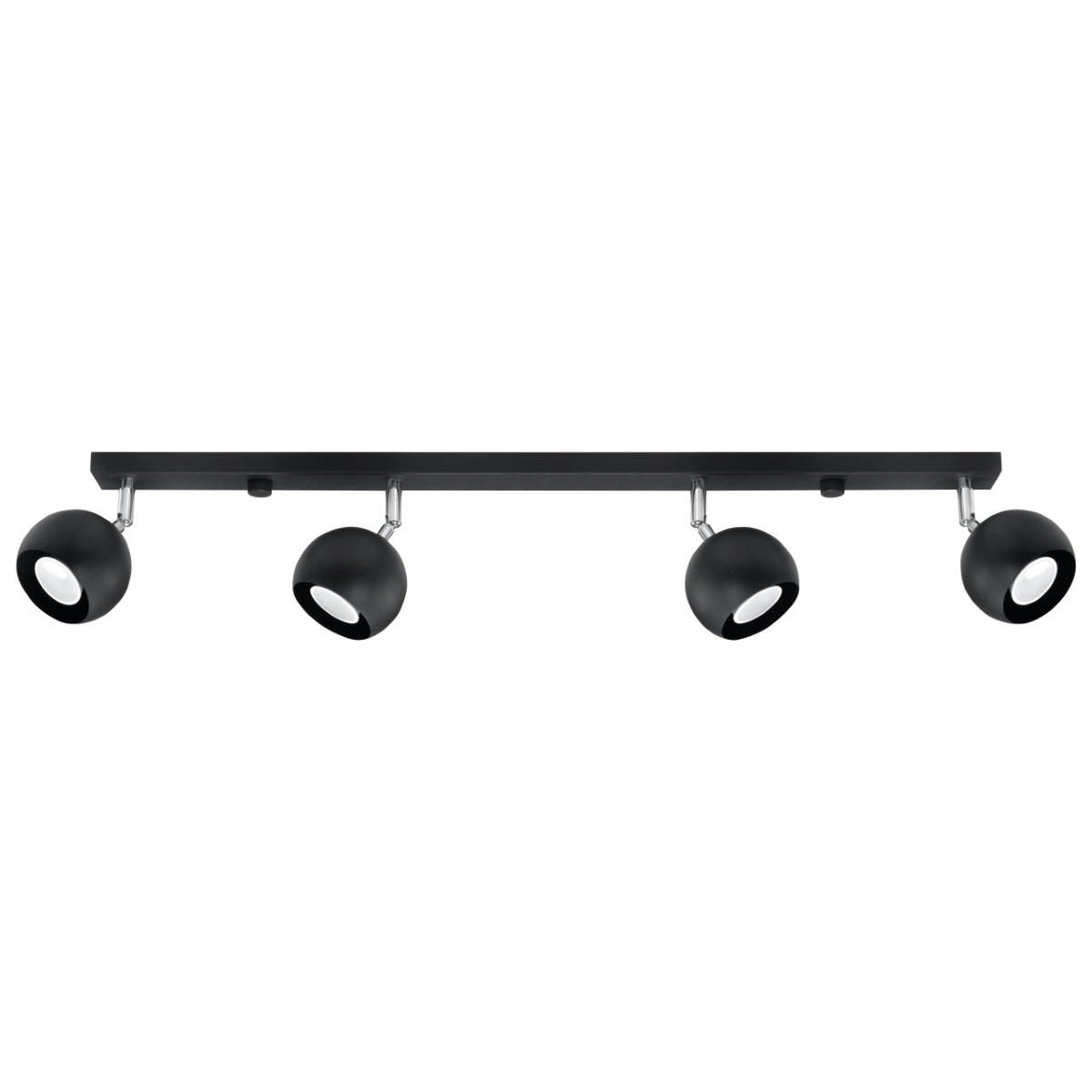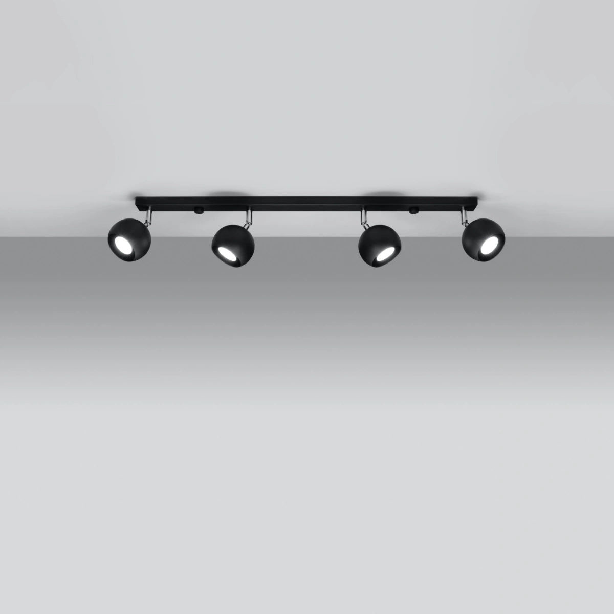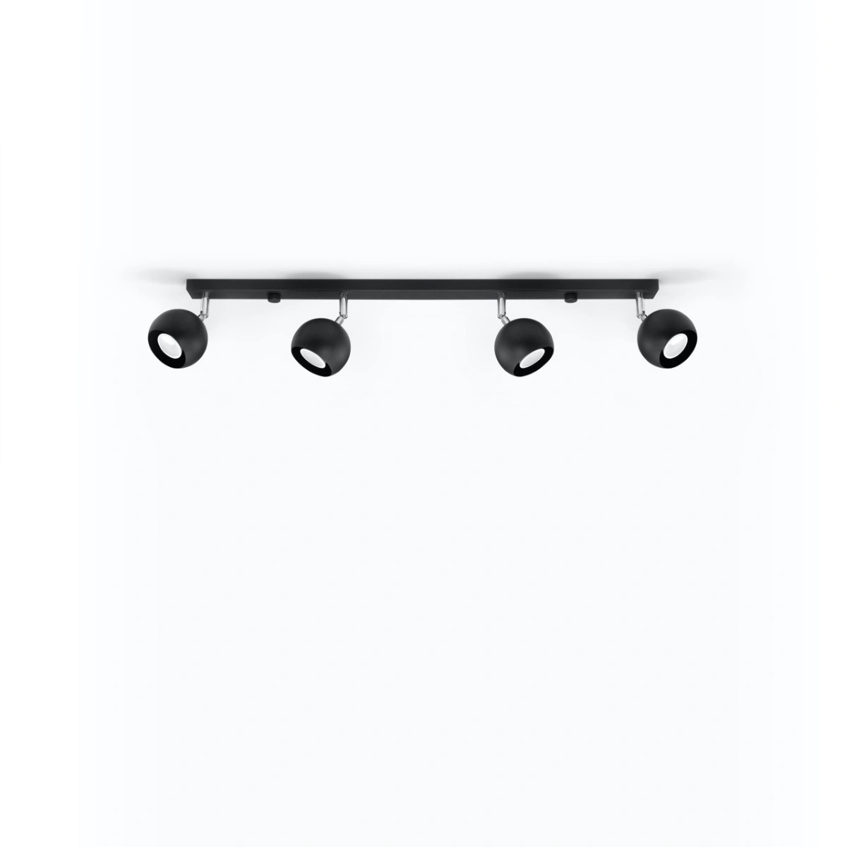 OCULARE 4L to plafon czarny, który zachwyca prostą, ale efektowną formą. Cztery kuliste klosze zamocowane na podłużnej, metalowej listwie tworzą spójną, nowoczesną kompozycję idealną do wnętrz utrzymanych w stylu industrialnym lub loftowym. Przemyślana konstrukcja lampy umożliwia skierowanie każdego ze źródeł światła w inną stronę, dzięki czemu łatwo dopasujesz oświetlenie do układu swojego salonu, kuchni lub strefy jadalnianej. Czerń metalu dodaje aranżacji głębi i podkreśla nowoczesny charakter przestrzeni.