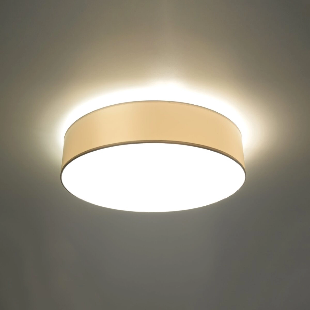 Okrągły plafon Arena dostępny jest w wielu konfiguracjach. Do wyboru oferujemy Ci szary, biały i czarny metalowy klosz. Jego kształt zbudowany jest cylindryczny, o czterech różnych średnicach: 25, 35, 45 i 55 cm. Mleczne tworzywo rozprowadza światło żarówki równomiernie po przestrzeni, zapewniając przyjemny dla oka efekt. Gwint E27 jest uniwersalnym wejściem dla żarówek tradycyjnych, LED czy energooszczędnych. Prosta forma to również duża łatwość czyszczenia.