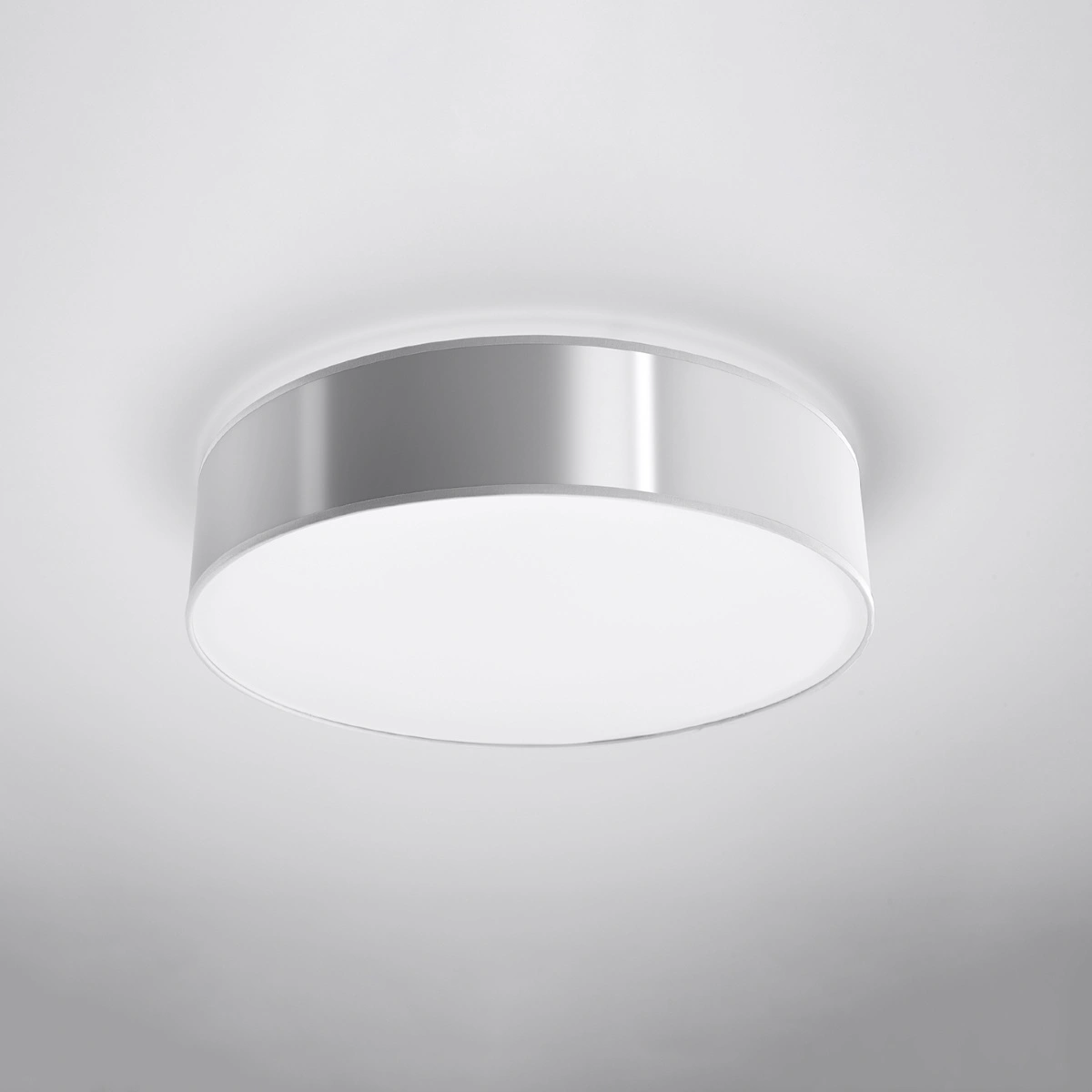 Plafon sufitowy okrągły Arena 55 marki Sollux to nowoczesna lampa o średnicy 55 cm, wykonana z trwałego tworzywa sztucznego w eleganckim szarym kolorze. Wyposażona w cztery oprawki na żarówki E27, zapewnia intensywne i równomierne oświetlenie, które doskonale sprawdzi się zarówno w salonie, jak i w kuchni. Dzięki minimalistycznej formie i uniwersalnej kolorystyce plafon Arena 55 harmonijnie wpisuje się w aranżacje nowoczesnych wnętrz.