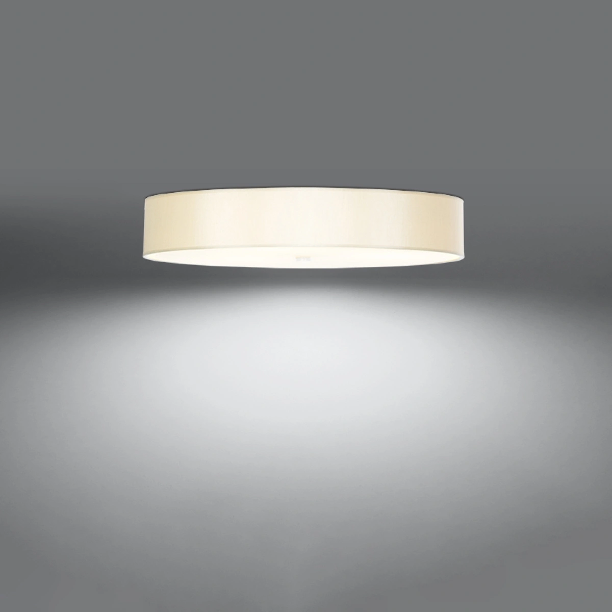 Plafon sufitowy okrągły SKALA 80 marki Sollux to efektowne i funkcjonalne oświetlenie, które doskonale wpisuje się w nowoczesne wnętrza. Wyróżnia się dużą średnicą 80 cm oraz subtelną bielą, co pozwala mu stać się nie tylko źródłem światła, ale także dekoracyjnym akcentem pomieszczenia. Konstrukcja z połączenia szkła, tkaniny i metalu gwarantuje trwałość i łatwość w utrzymaniu czystości, a sześć źródeł światła na żarówki E27 zapewnia równomierne oświetlenie nawet większych przestrzeni.