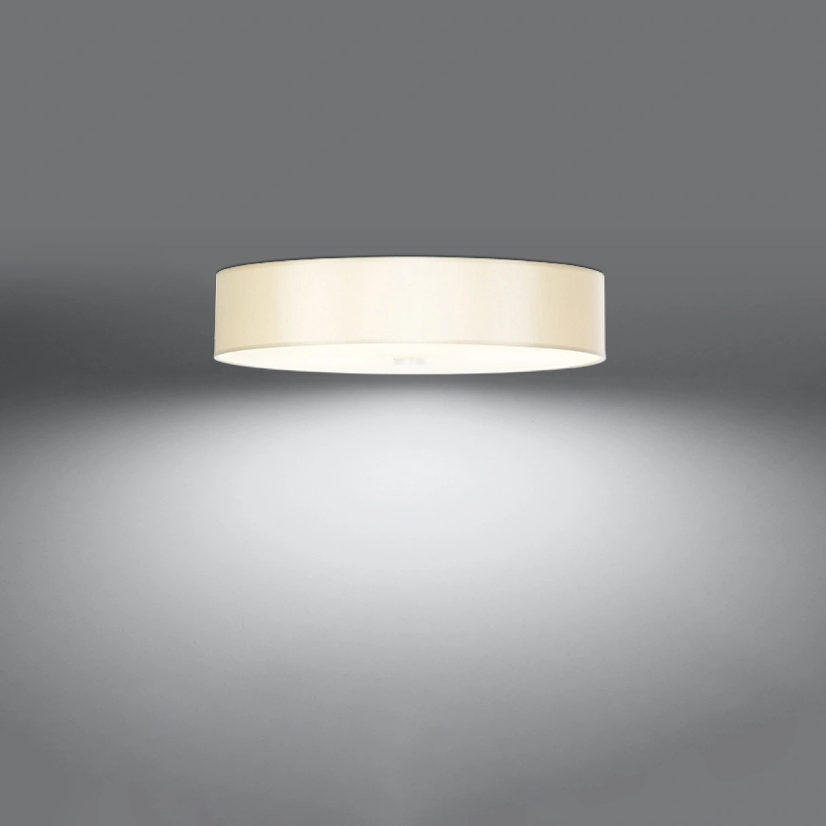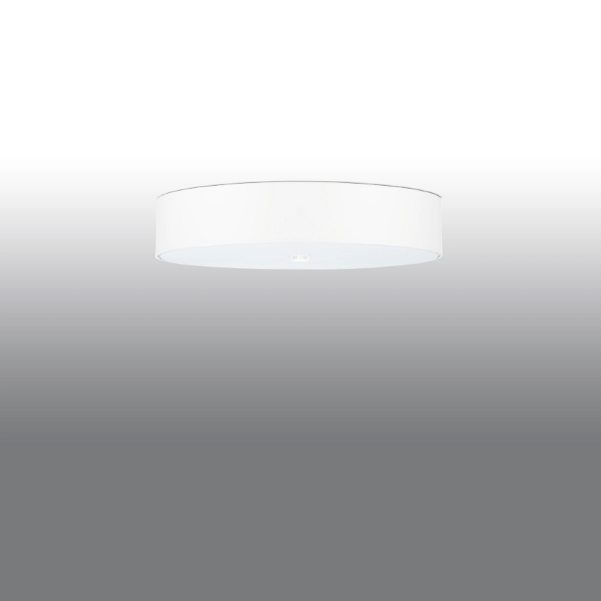 SKALA 60 to plafon do salonu, kuchni oraz sypialni, który sprawdzi się wszędzie tam, gdzie liczy się równomierne oświetlenie i estetyka. Duża średnica lampy pozwala skutecznie doświetlić nawet przestronne wnętrza, eliminując problem ciemnych zakątków. Biała tkanina abażuru subtelnie rozprasza światło, zapewniając komfortowy klimat zarówno podczas rodzinnych spotkań, jak i wieczornego relaksu.