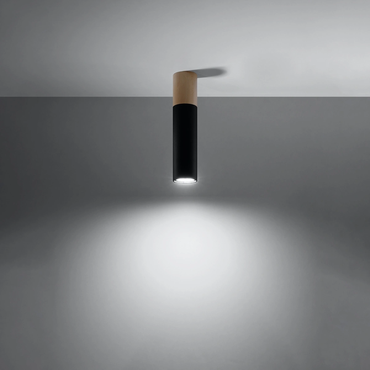 Plafon PABLO czarny zaskakuje prostotą formy, która doskonale wpisuje się w nowoczesne i industrialne wnętrza. Połączenie naturalnego drewna z metalem nadaje mu unikalny charakter, podkreślając wyrafinowany gust właściciela. Smukły kształt tuby sprawia, że lampa nie przytłacza przestrzeni, lecz staje się subtelnym akcentem – zarówno w jasnych, minimalistycznych aranżacjach, jak i w przytulnych, loftowych salonach czy sypialniach.