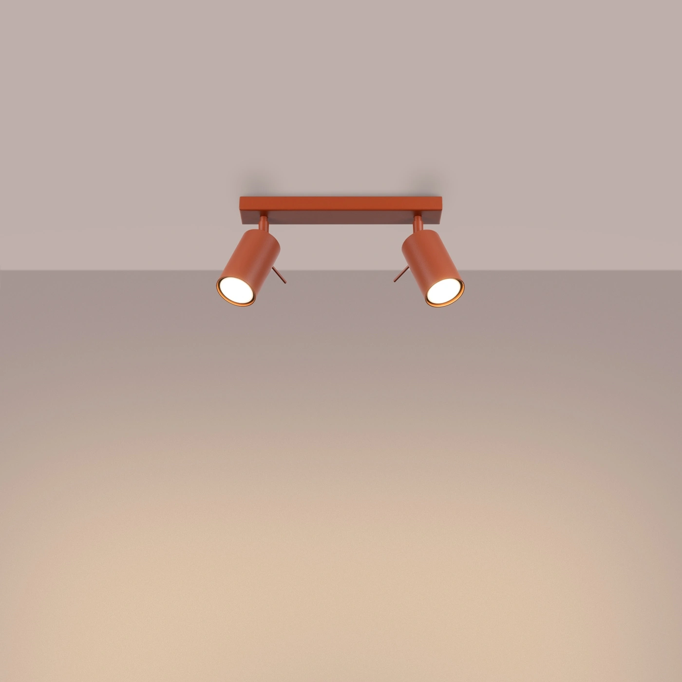 Plafon sufitowy RING 2 marki SOLLUX LIGHTING to nowoczesna lampa wykonana ze stali, w wyrazistym czerwonym kolorze o odcieniu terrakoty. Model wyposażony jest w dwa ruchome klosze, pozwalające precyzyjnie skierować światło tam, gdzie go potrzebujesz – zarówno w salonie, sypialni, jak i przedpokoju. Dzięki kompaktowym wymiarom (wysokość 17 cm, szerokość 6 cm, głębokość 30 cm) plafon doskonale sprawdzi się nawet w ograniczonych przestrzeniach, zachowując przy tym efektowny, nowoczesny charakter.