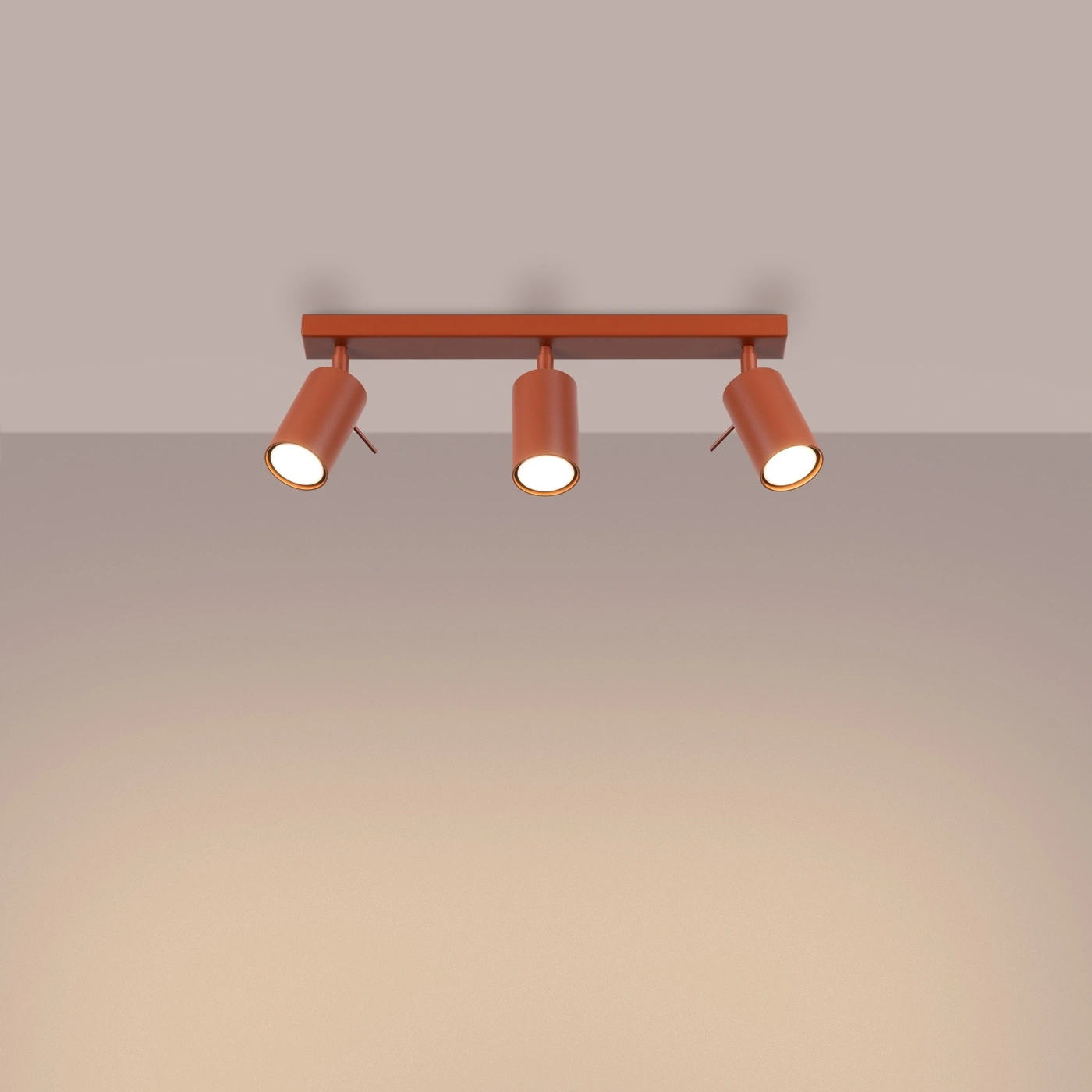 Plafon sufitowy RING 3L marki Sollux Lighting to nowoczesna propozycja oświetlenia do salonu, sypialni i przedpokoju. Wykonany z trwałej stali, wyróżnia się intensywnym czerwonym kolorem (terracotta), trzema ruchomymi kloszami oraz minimalistyczną formą, która świetnie wpisuje się w aktualne trendy wnętrzarskie. Model o szerokości 45 cm i wysokości 17 cm doskonale sprawdzi się jako główne źródło światła, nadając wnętrzu niepowtarzalny akcent kolorystyczny.